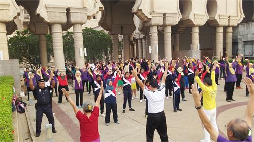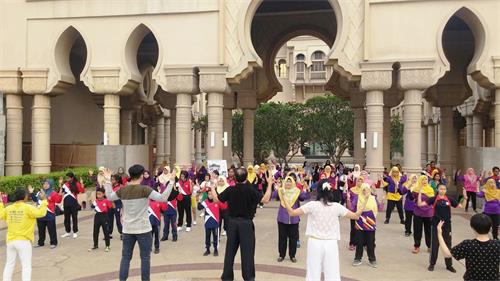 ![]() 图2~5:主办方安排了法轮功学员在柔佛州新山伊斯干达(Kota Iskandar, Johor Bahru)州政府办公楼前教功,上百名与会者当场学炼法轮功。 |