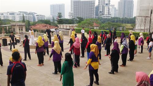 ![]() 图9:法轮功的功法也广受PUSPANITA成员们的喜爱。左一为正在专心学炼法轮功的Nurul。 |