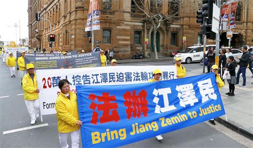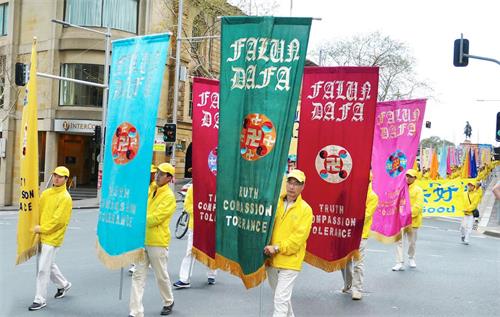 活动主办方李先生介绍:“反迫害是一九九九年中共对法轮功开始残酷迫害开始后,法轮功学员的一个基本的诉求。这次游行队伍里还有一个信息要传递给民众,就是大.纪.元;的两部新书:一个是《共产主义的终极目的》,一个是《魔鬼在统治着我们的世界》。以横幅的形式将这两本书的标题展示给澳洲主流社会的人士。”