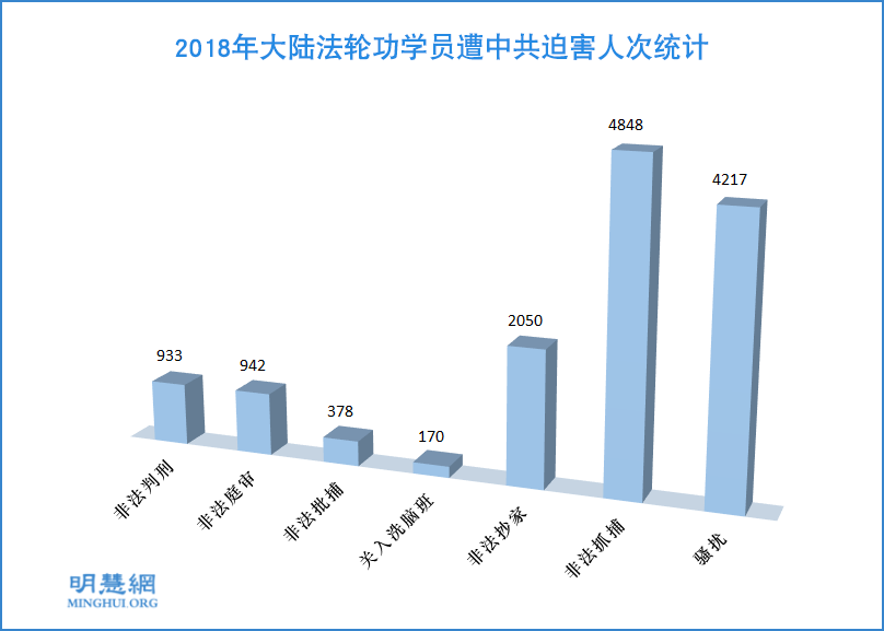![]() 图1:2018年大陆法轮功学员遭中共迫害人次统计 |