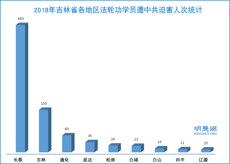![]() 图2:2018年吉林省各地区法轮功学员遭中共迫害人次统计 |