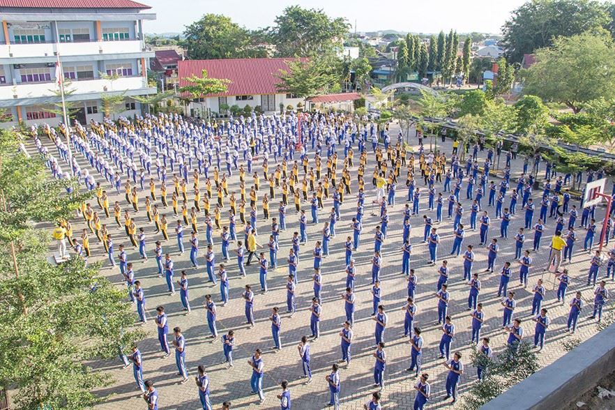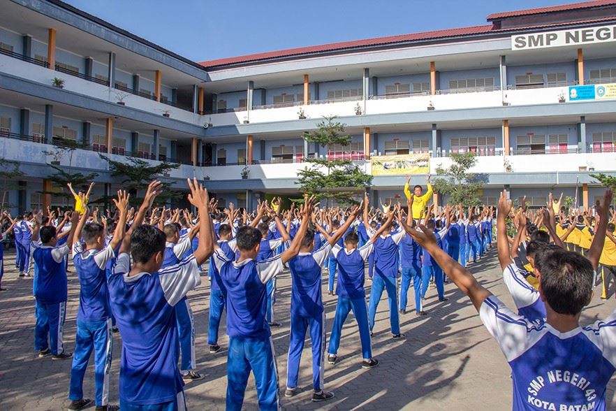【明慧网二零一九年一月十八日】二零一九年一月十二日,星期六,印尼巴丹岛法轮功学员再次来到第43国立中学,向学生与老师们介绍法轮功的功法。此前,二零一七年时,法轮功学员也曾经来到该校给上一届学生介绍法轮功。