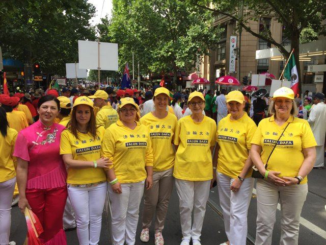 来自昆士兰黄金海岸的玛丽莲·杰克逊(Marilyn Jackson)和丈夫,在墨尔本游玩三天,在游行起始点,能仔细观看法轮大法队伍的预演,她说:“我炼瑜伽,知道打坐的好处,能感受到(法轮功学员的)能量,很美妙,他们所有人都如此安静祥和,色彩亮丽,真的很吸引人。真善忍很棒,意涵深邃。”
