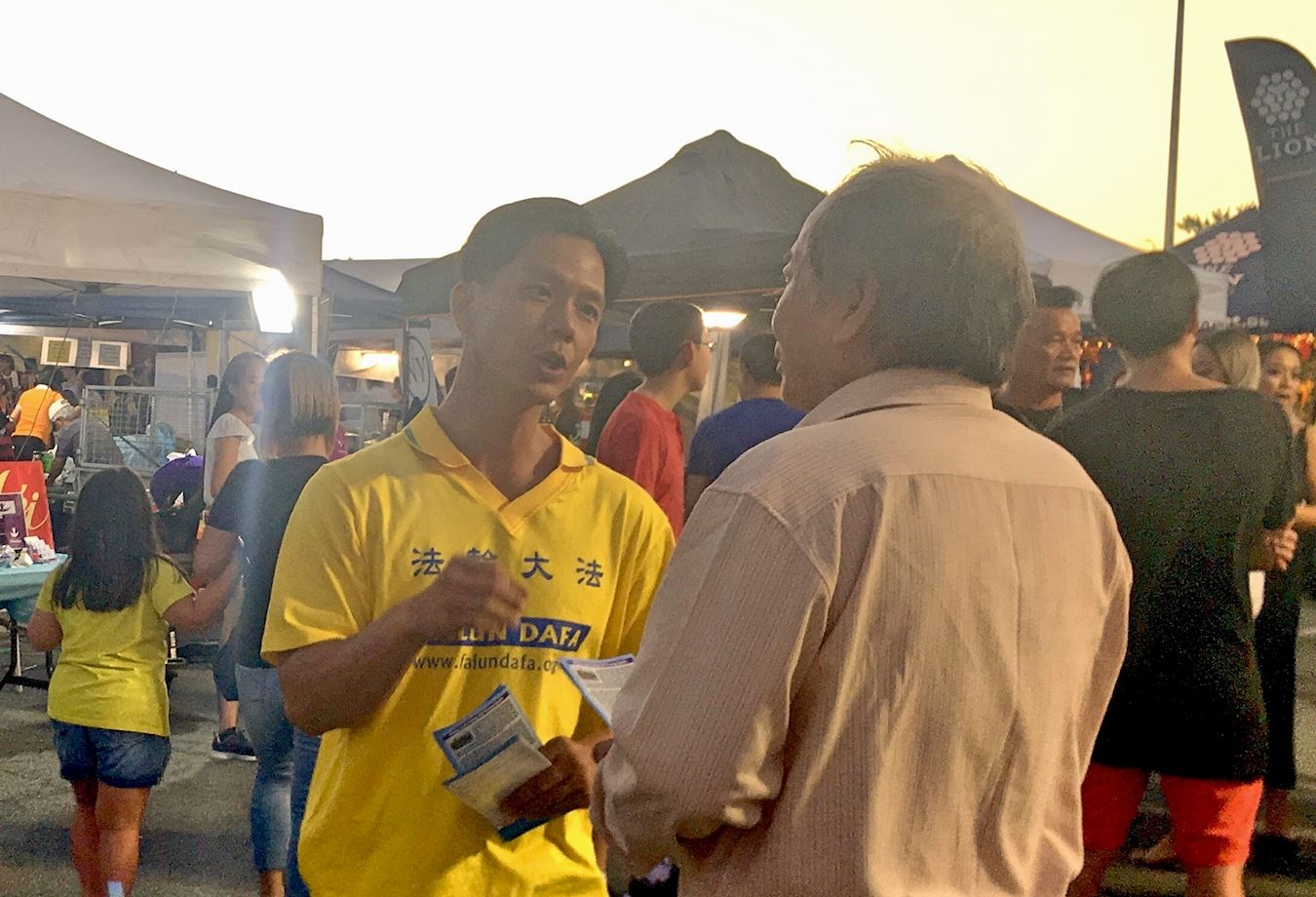 有一位来澳洲已经十年的华裔女士,最初,她只是站在远处默默观看,后来忍不住上前询问法轮功到底是怎么回事。当她了解到法轮功是教人按照真、善、忍做好人,现已弘扬全世界一百多个国家和地区,以及中共对法轮功的迫害真相后,这位女士的态度转变了,由最初的害怕,变得坦然欣慰。她高兴地接受了真相资料,临走时还问学员:“在哪里可以学炼法轮功?”