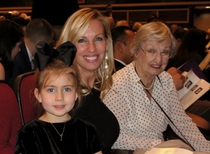 ![]() 图11:彤达拉雅·皮尔逊(Tondalaya Pearson)(中)和母亲、女儿等一起观看了一月五日晚神韵环球艺术团在北卡州杜克能源艺术中心罗利纪念礼堂的演出。 |