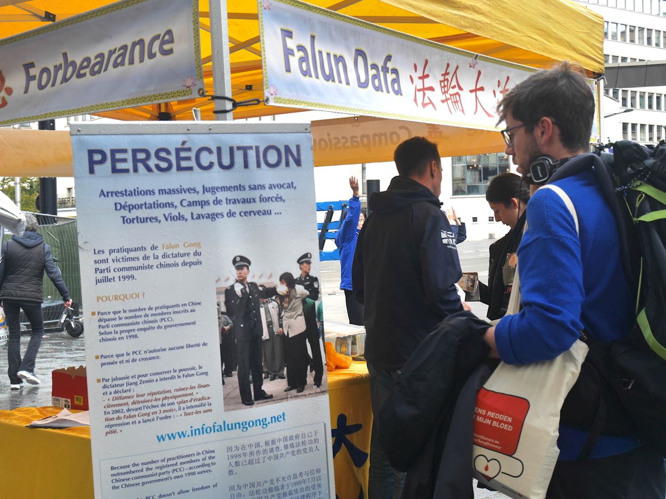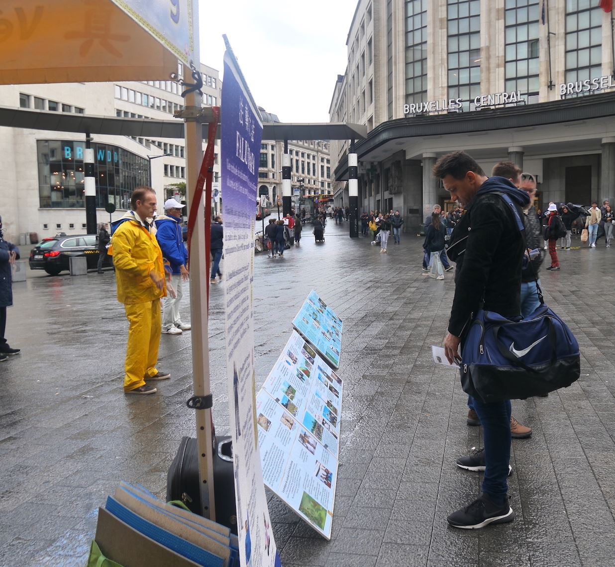 另一位在布鲁塞尔大学读书的比利时学生,读过真相展板来到展桌前,希望能够签名反迫害。他说:“刚刚看到展板上的说明,了解中共迫害法轮功的情况,我相信这是真实发生在中国的事情,我知道最近发生在香港中共的暴行,我支持法轮功反迫害。”