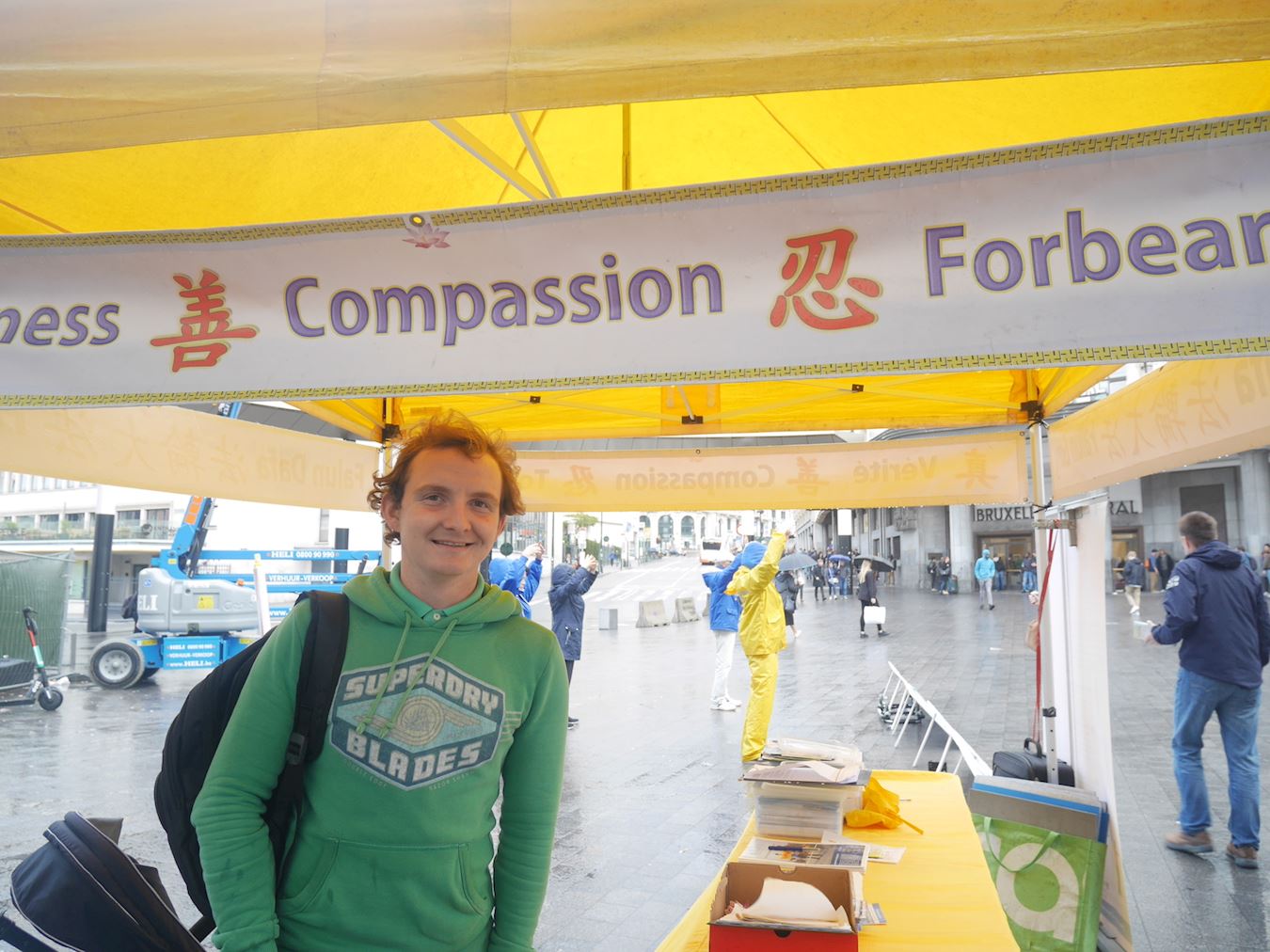 奥本·普林格尔(Auban Pringle)在中国教授英语后,返回布鲁塞尔大学学习社会学中的政治学和传媒研究。他在中国期间就听说中共迫害法轮功的事情,以及中共迫害其他中国人的事情,他说:“是的,我之前已经听说过他们(中共)在迫害法轮功。我是在中国的时候听说的。我在中国的时候越来越多的开始审视中共政府,开始有意了解这样的事情并想了解到底发生了什么。我已经知道对法轮功的迫害,但是并不清楚原因。”所以他这次希望了解中共迫害法轮功更多的真相。
