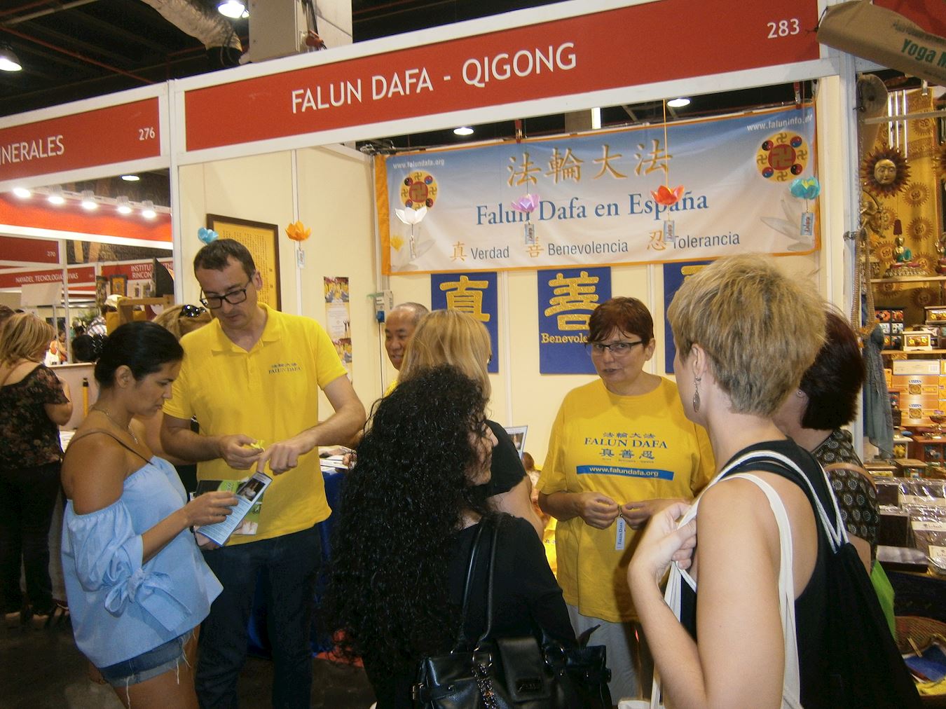 ![]() 图1~2:法轮功学员参加西班牙瓦伦西亚健康博览会,介绍功法。 |