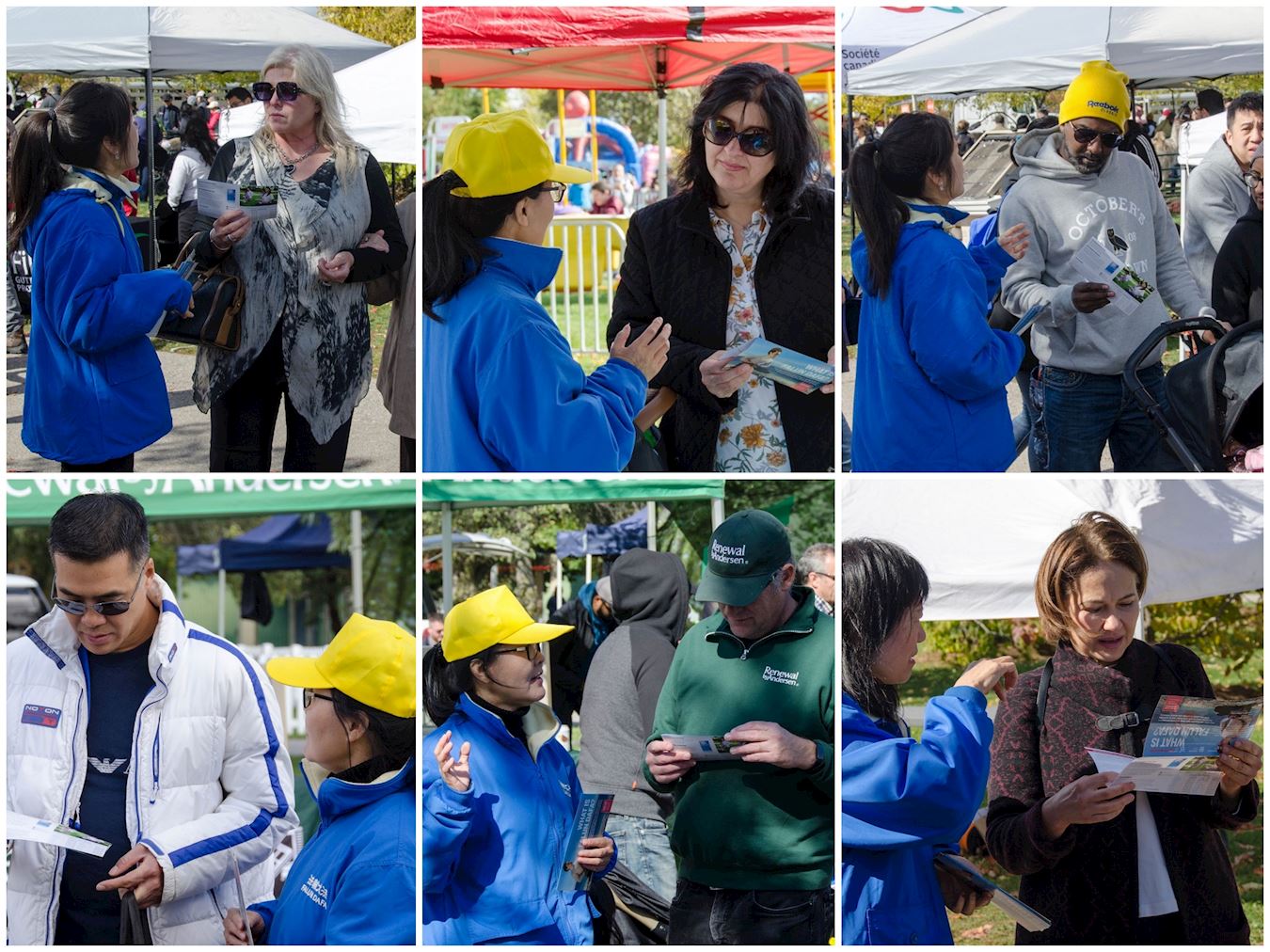 位于多伦多北部的列治文山市,当地有很多华裔居民,在经过法轮功展位时,有的华人告诉学员自己已经拿过介绍法轮功的资料,有的华人用手机拍下介绍法轮功的展板,还有的华人和法轮功学员交流并表达他们的支持。