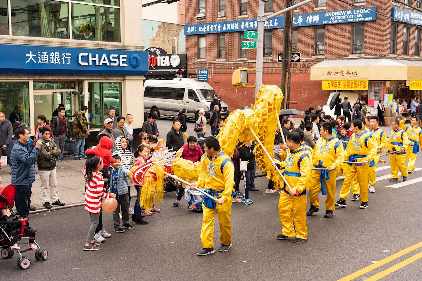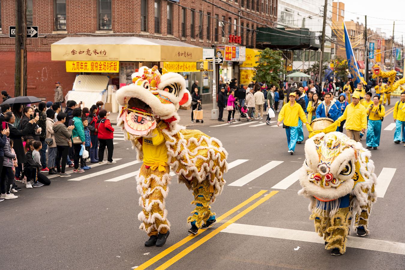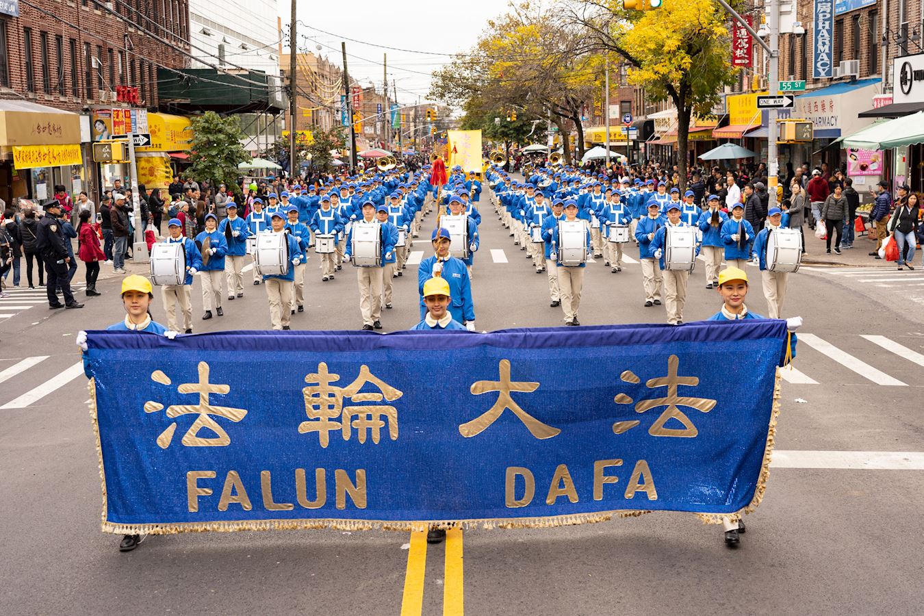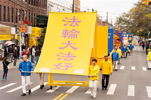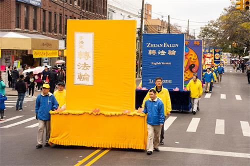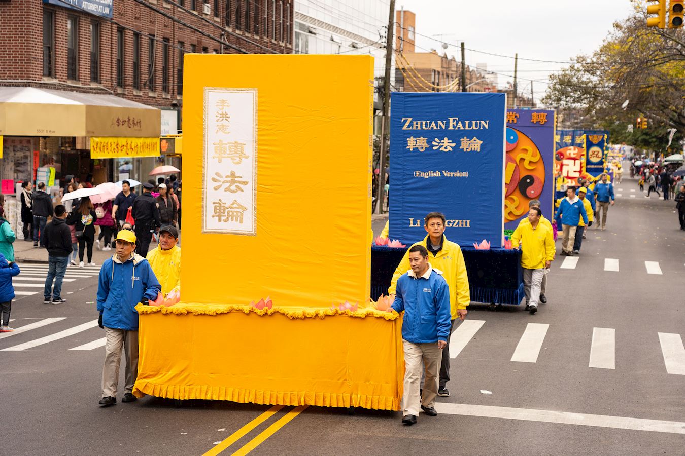 游行分为三部份:“法轮大法好”,“停止迫害法轮功”、“三:退.保平安”。盛大的游行队伍行走在布鲁克林华人社区最繁忙的商业街上,从六十八街走向四十二街,覆盖了最主要的街面。上百条中英文大横幅、竖旗及巨幅展板,传递着真相与祝福:“法轮大法好”、“世界需要真善忍”、“法轮大法洪传100多个国家地区”、“法轮大法使人心向善 道德回升”、“停止迫害法轮功”、“中共活摘法轮功学员器官 惨绝人寰必遭天谴”、“法办江泽民”、“解体中共 制止迫害”、“共产主义的终极目的是毁灭人类”、“共产主义邪灵正在统治我们的世界”、“回归传统 道德回升”、“·九·评*神威 天灭中共”、“ 三:退.保命保平安”等。