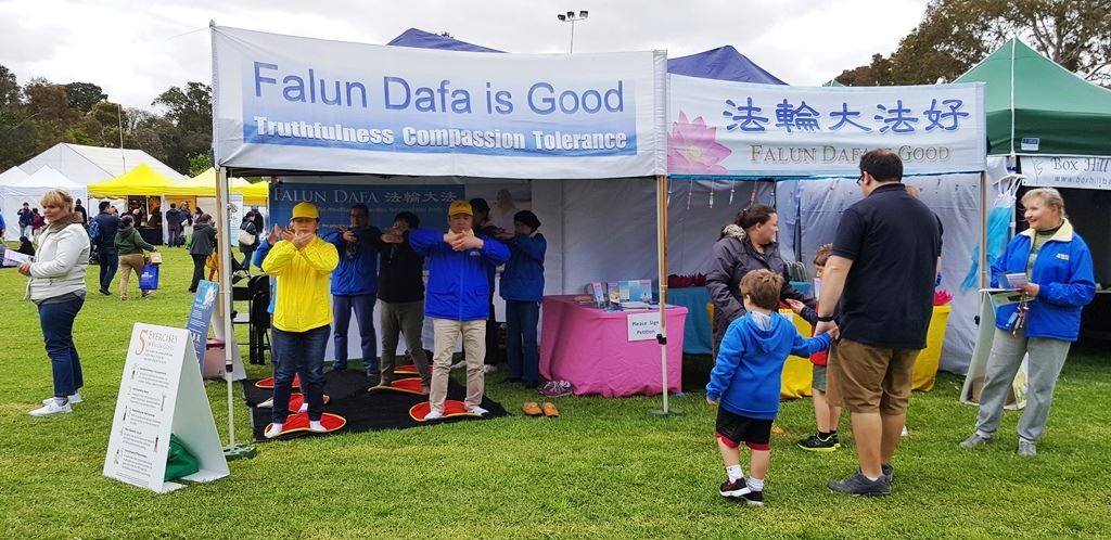 ![]() 图1~3:二零一九年十月二十日,墨尔本法轮功学员受邀参加春季地方节庆(Spring Festival),祥和的功法展示吸引民众驻足了解真相。 |