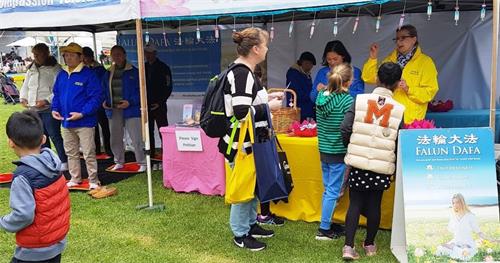 ![]() 图4:法轮功学员芭芭拉表示,当地不少民众在找寻能够获得身心升华的方法,也有很多民众还不太了解法轮功反迫害的真相,和学员们一起参加社区节庆传播福音,很开心能利用这个好机会和民众分享自己修炼后的体会。 |