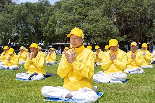 ![]() 图1~3:部份法轮功学员在使命湾炼功,场面祥和。 |