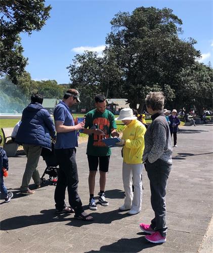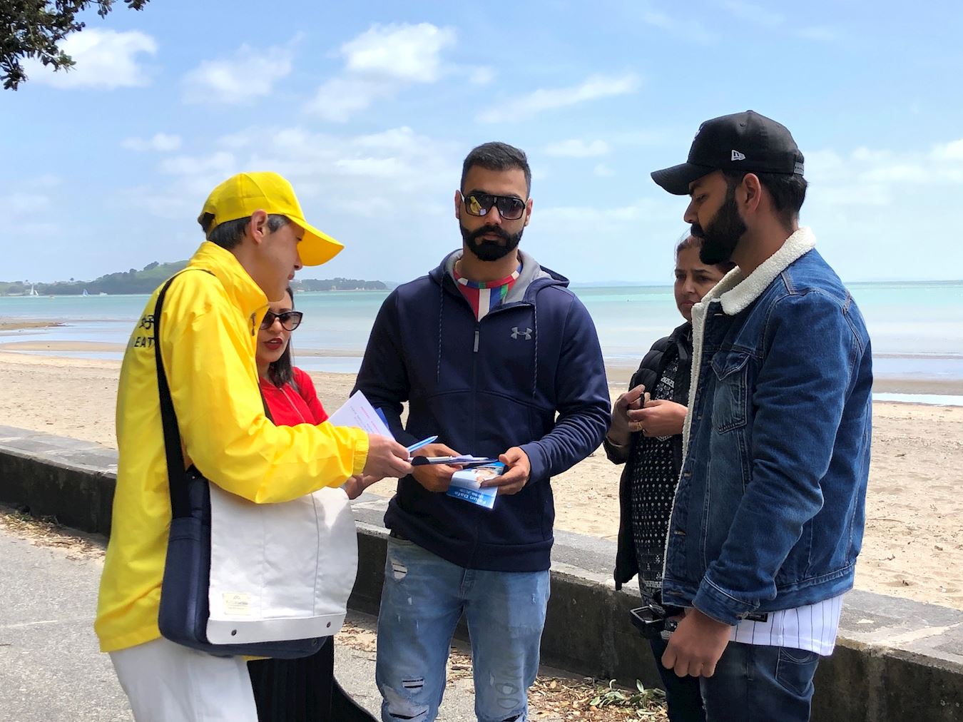 艾丽西亚(Alicia)前几天刚从英国回到新西兰,明年年初她就要前往中国教英语,在使命湾看到法轮功学员的功法展示后她表示,她对打坐很感兴趣,法轮功功法带给人宁静祥和的感觉。她表示,中共对法轮功的迫害太恐怖了,法轮功学员象这样在户外集体炼功恰恰向人们展示了法轮功的平和。她说:“我相信中共活摘法轮功学员的器官正在发生,这种罪恶真的令人难以置信。”她还表示,表达自己的意愿和诉求是天赋人权,而如果有人来要求你不能再这样做,这很恐怖,没有人或政府有这种剥夺他人人权的权力。