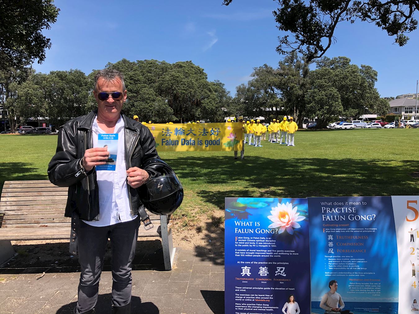 安东尼·弗伦希(Antony French)是新西兰当地的一位卡车司机,当他得知中共迫害打坐修炼的法轮功学员感到十分震惊,他想知道如何可以帮助法轮功学员让更多人知道这场迫害,他认为新西兰总理也应该站出来反对迫害。因为当今世界充斥着太多的贪婪暴力,还有各种各样的毒品,而“真、善、忍”正是这个世界人们都应该遵循的价值观。