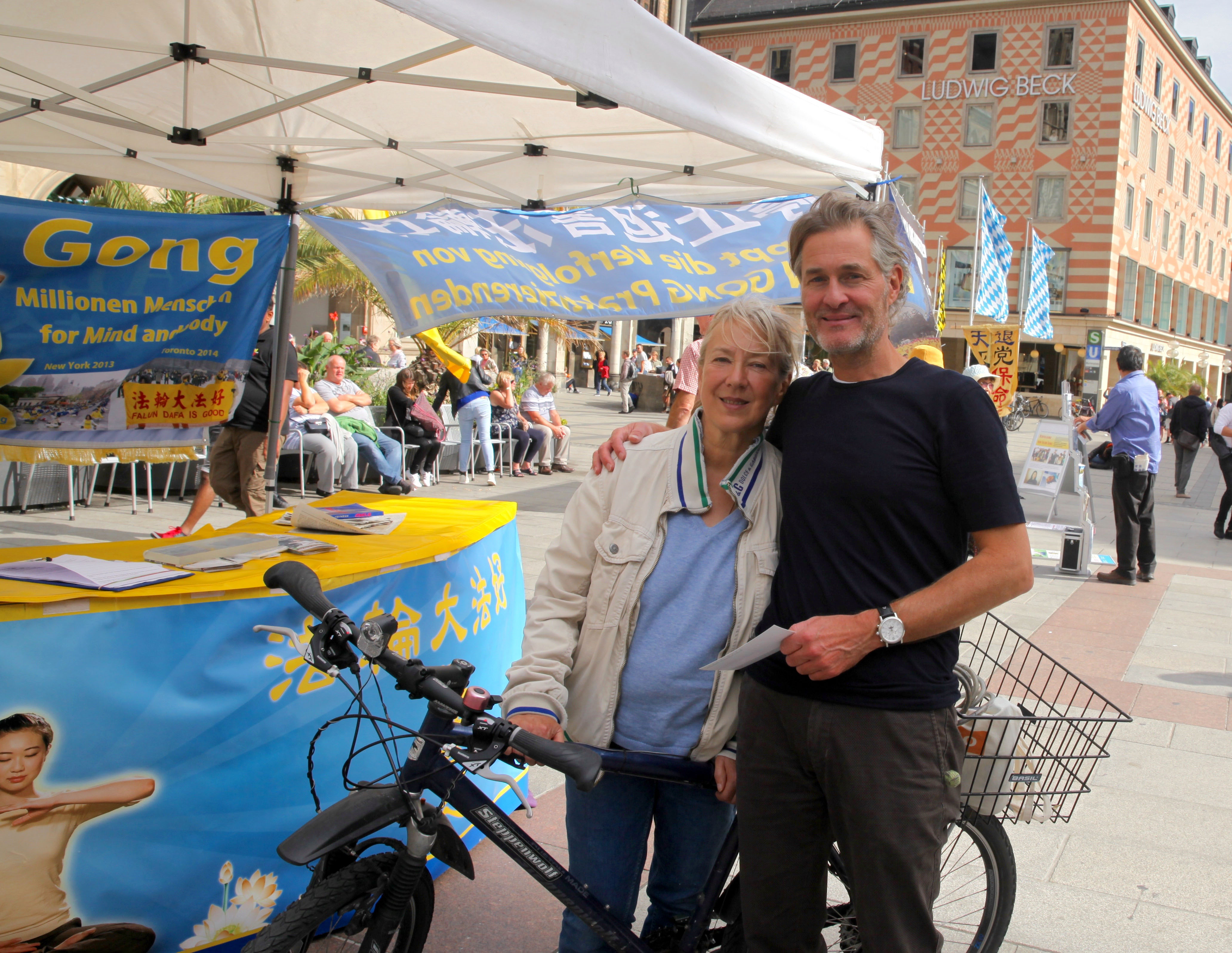 来自台湾的简先生推着自行车来到展位前签名,他从土耳其出发,骑车到慕尼黑看朋友,遇到法轮功学员在举办活动。他说自己在台湾就已经见过多次法轮功学员的活动。他认为中共不应该迫害信仰“真、善、忍”的法轮功学员,他说,“其实中国人没有问题,是中共政府有问题。”他并说:“中共越去压抑这些,越会得到反效果。限制人民的思想、言论,是限制不了的。”
