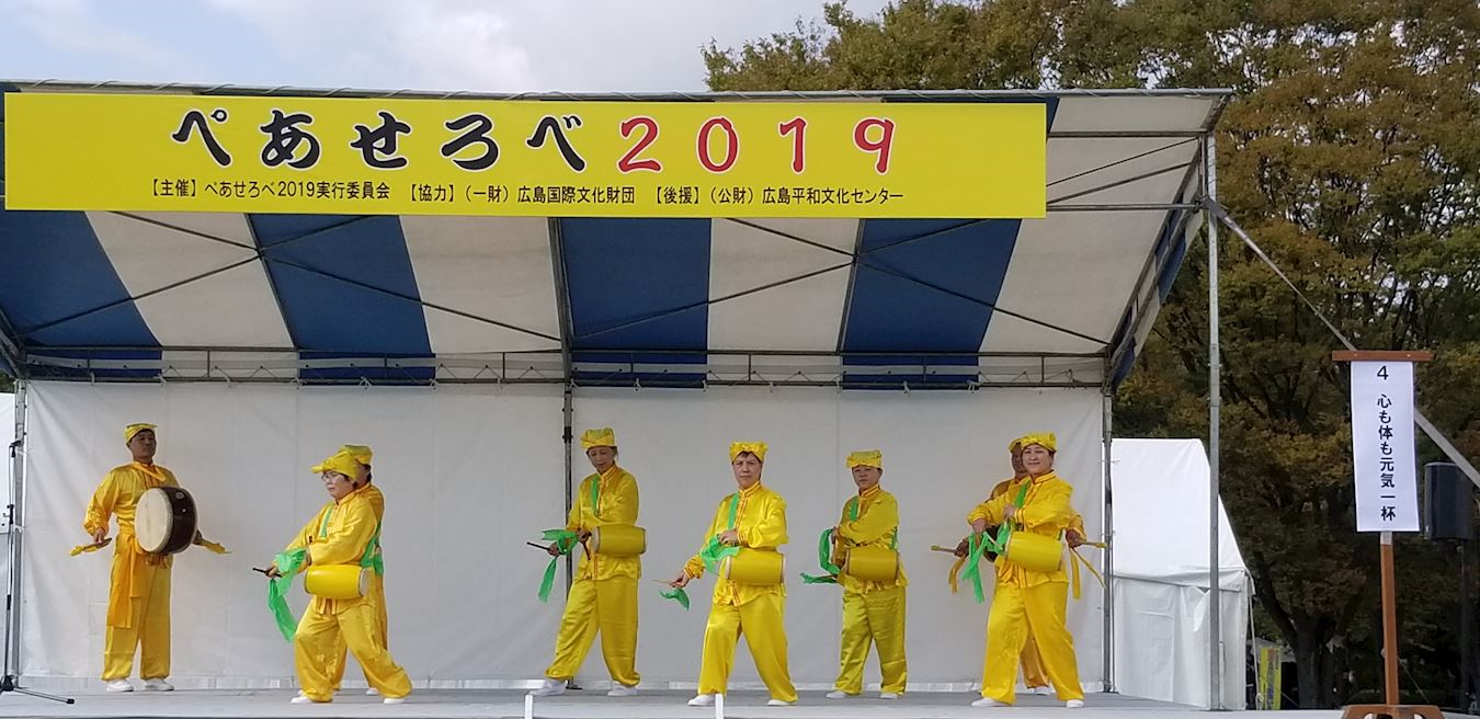 ![]() 图1:二零一九年十月二十七日,法轮功学员在广岛和平与友爱国际交流节的舞台上演示法轮功五套功法动作。 |