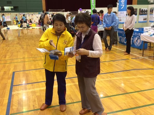 ![]() 图1~2:法轮功学员在日本稻泽市福祉宣传活动中向过往的市民介绍功法 |