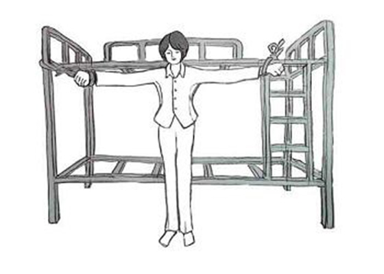 后来坐的时间长了,臀部就坐不了,臀部都坐烂了,不敢着凳子。她们又叫我站着,就是一个姿势的站着,一点都不能动,从早上五点起床一直到晚上十点半,后来就到十一点。这时又换包夹了,一个比一个恶。