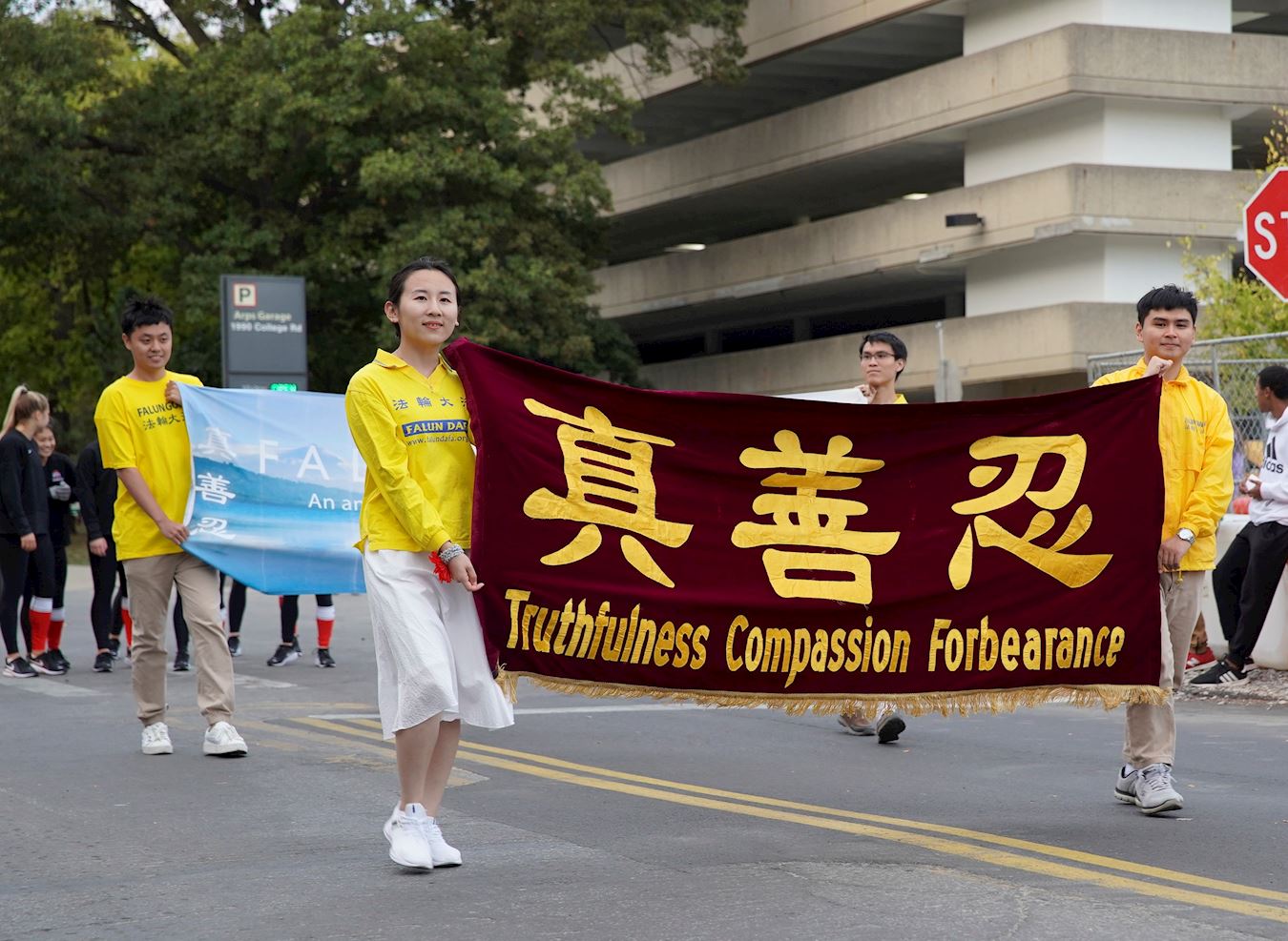 俄亥俄州立大学是全美面积最大的校园之一,有超过三千中国留学生在这里就读。游行开始之前,两名中国留学生看到法轮大法的横幅,好奇地过来了解真相。游行过程中,有一些中国留学生在路旁窃窃私语,虽然他们不敢接受真相资料,但是他们亲眼看到了,法轮功在美国是合法的,而且有很多学生在修炼法轮功。