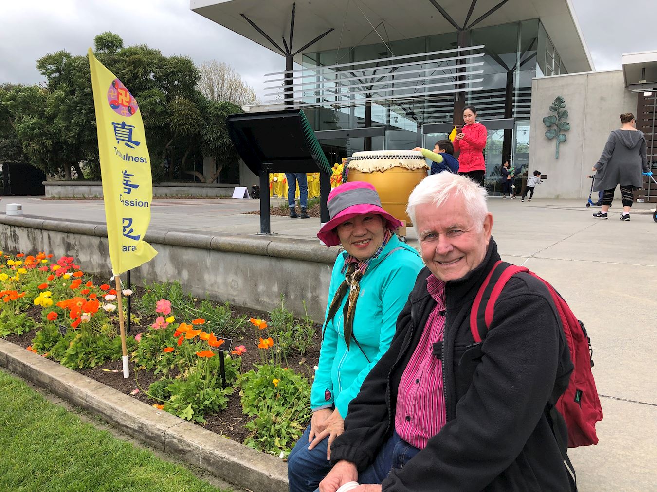 奥克兰植物园占地六十四公顷,有来自世界各地的上万种植物。法轮功学员们精心地把整个植物园布置得充满了中国元素:象征着春天来临的“纸喜鹊”挂满了植物园的大厅;大厅的两端悬挂着体现了中国传统的文化信仰及人们追求良好愿望的“中国结”;庭院亭子里挂着“真、善、忍”字样的灯笼;身着美丽汉服的少女们手提花篮,向人们分发带有“法轮大法好”书签的手工莲花。