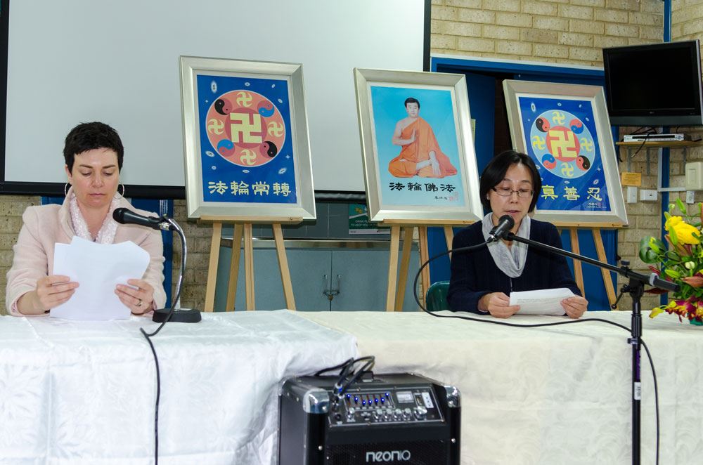 她曾经写信给一千多所西澳中小学生的校长告诉他们有关孔子学院的真相,替西澳大.纪.元;报纸选择英文版面文章,以及帮助悉尼的英文大.纪.元;做校对。她现在也帮助西澳法轮功团体的脸书做一些编辑的工作。苏珊交流了自己在学法中受到的干扰和自己不断坚持学法的体会。苏珊认为,坚持学法和无条件的向内找是自己有了巨大进步的关键原因。