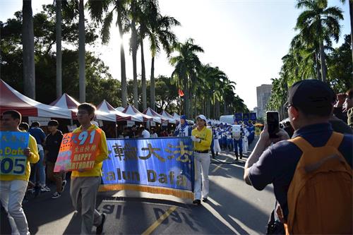 ![]() 图5~7:法轮大法社及天国乐团为下午游行压轴队伍,民众们纷纷拿起手机拍照留影。 |