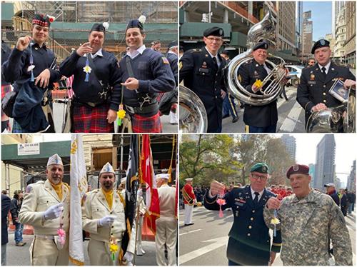 今年的纽约老兵节游行队伍由陆军、海军、空军和海岸警卫队,退伍军人和现役军人、高中和大学学生以及军人的支持者等三百个队伍组成,包括一百五十辆花车以及三十个巨型气球。游行队伍由五名游行总司仪的带领,从麦迪逊公园出发,沿第五大道,从二十六街一直走到四十八街。二万五千多名游行者及数十万观众热情互动,万人空巷,盛况空前。
