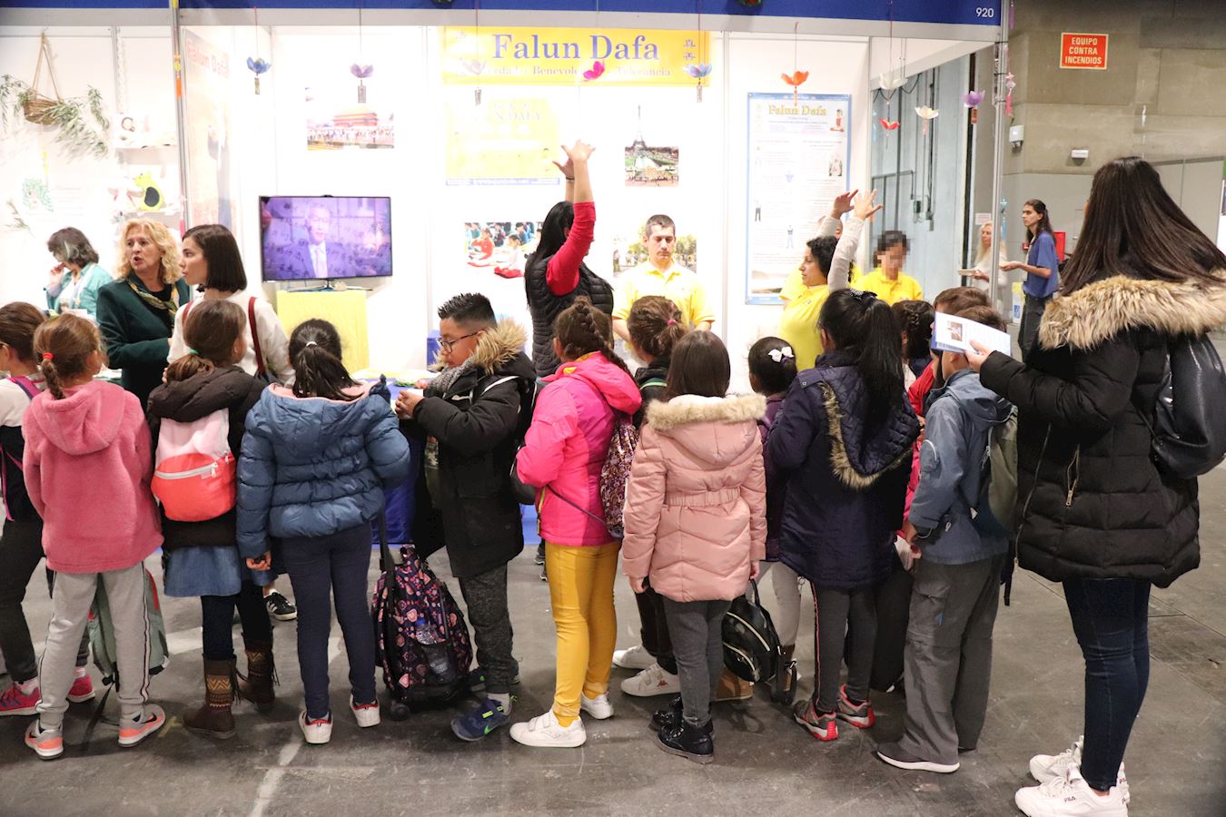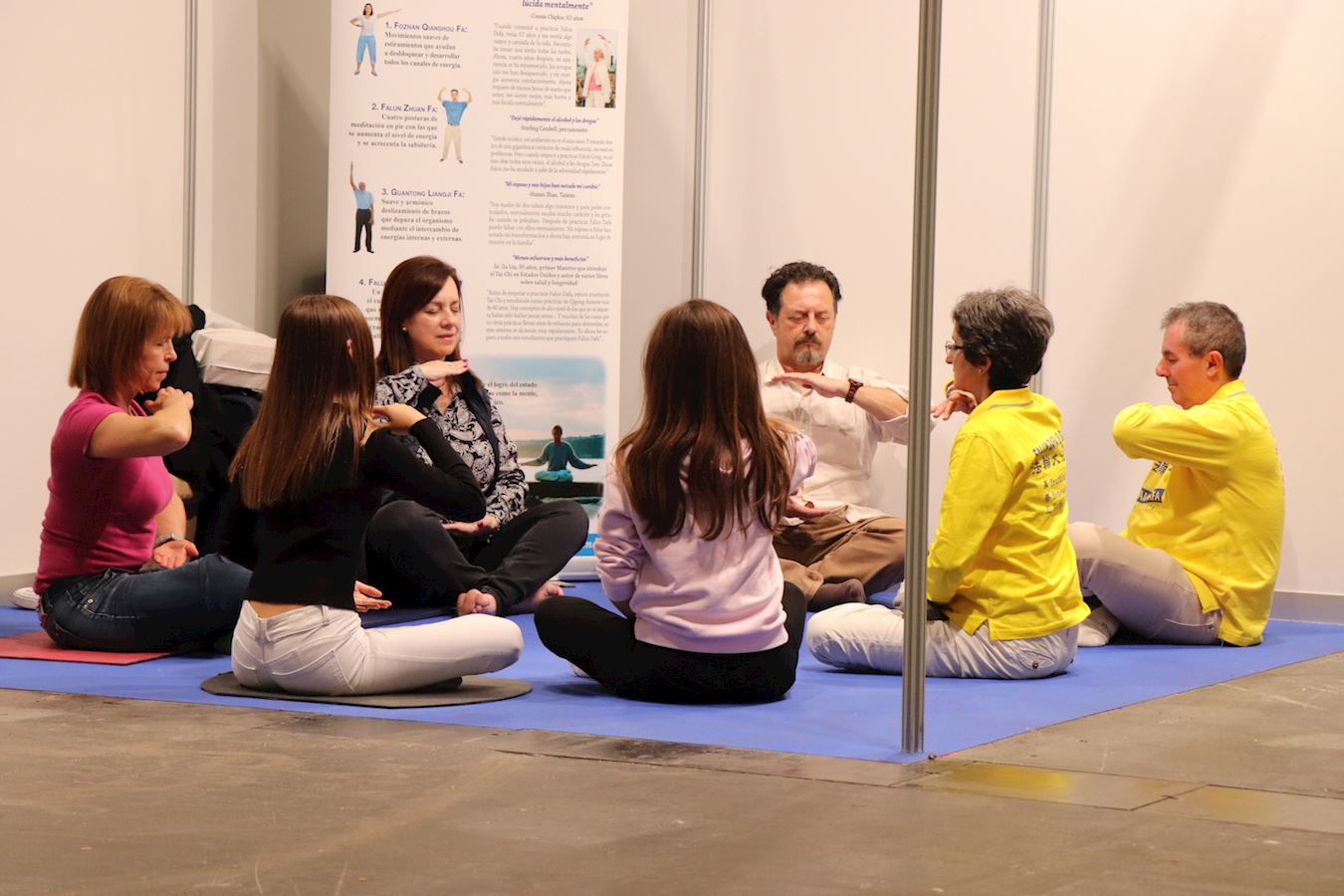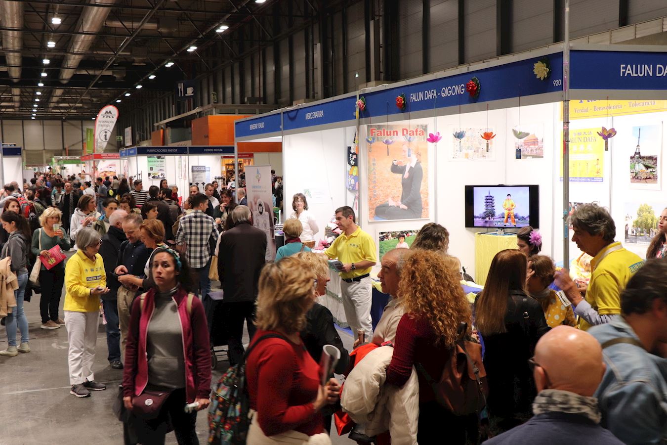 一位从西班牙海岛卡娜瑞尔斯(Canarias)远道而来的女士,在逛完了展会大厅几乎所有的摊位后,停在了法轮功学员的展位旁,她目不转睛地看着法轮功学员的功法演示。拿到传单后,她告诉法轮功学员,在这里形形色色的众多的展位之中,只有法轮功传达的信息真正打动了她的内心深处,这种感觉就是她一直在寻找的。
