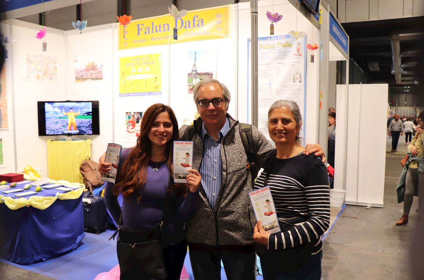 弗朗斯克(Francesco)一家路过展位,在得知这是中国的法轮功后,他们问到这就是在中国被迫害的法轮大法吗?他们曾在市中心遇到过法轮功学员举办的征签制止迫害的人权活动,他们都签了名,没想到在这里与法轮功再次相遇。他们询问了更多关于法轮功的信息,并表示鼓励法轮功学员坚持信仰,在与法轮功学员交流了许久才不舍离开。