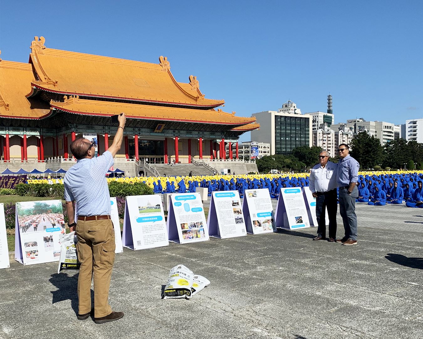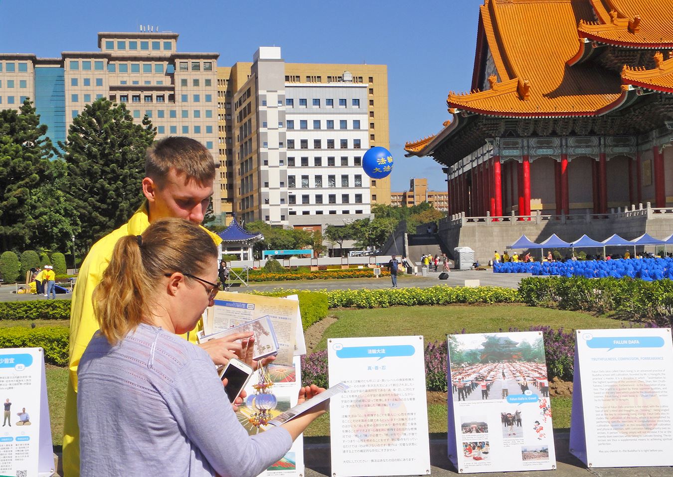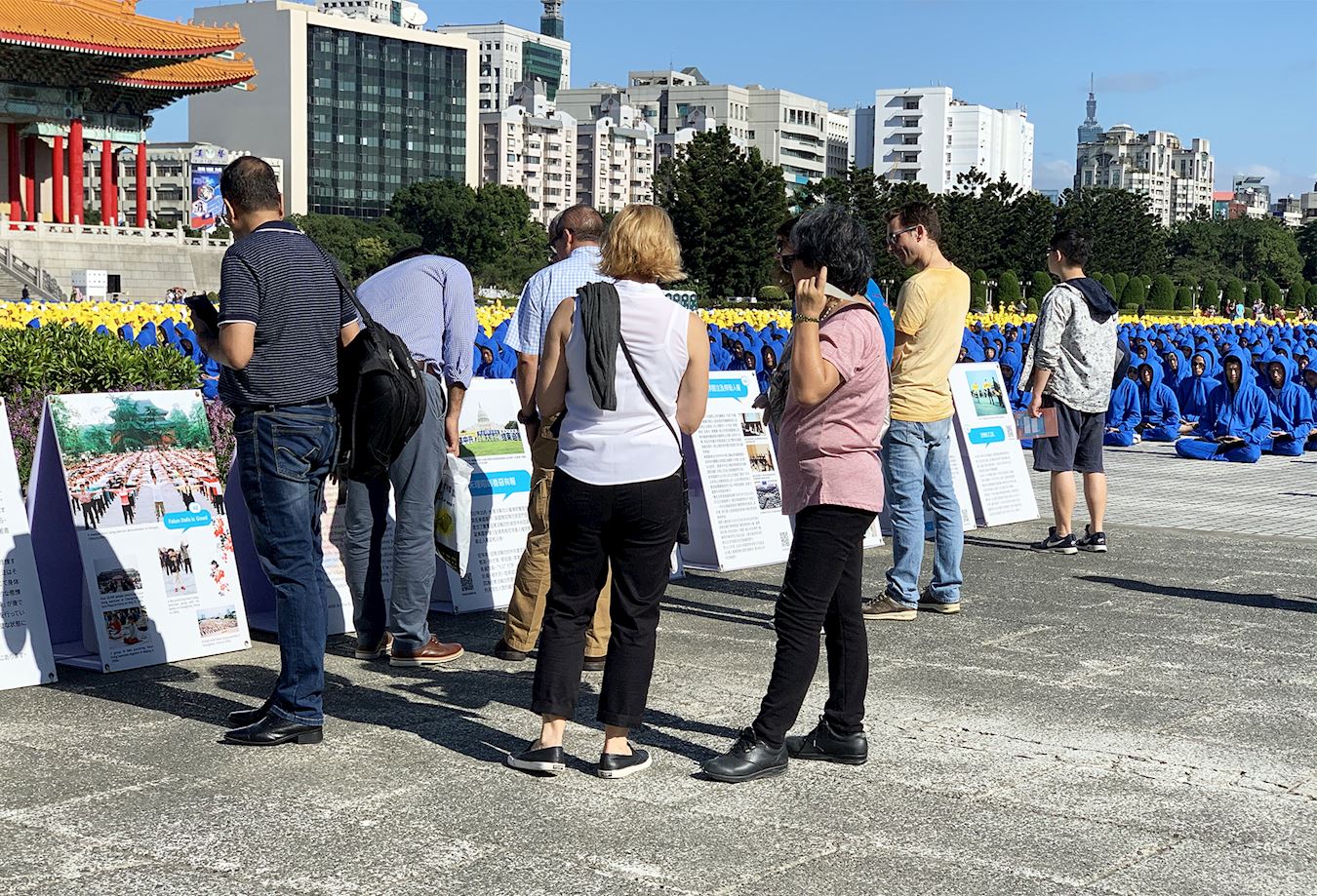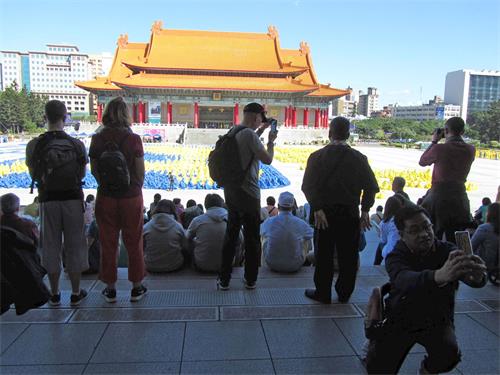 蔡小姐带法国友人到中正纪念堂旅游,这是她第一次遇见法轮功学员排字的盛况。听到发真相资料的学员向身边的法国友人说真相时,在交谈中她才一解心中的困惑:为什么在一些景点总是看到法轮功学员身影?原来,是要让被谎言蒙蔽的大陆游客有机会了解法轮功洪传与被迫害的真相,才不会在中共谎言下,配合中共举报好人,进而让善良人遭受迫害甚至被活摘器官的非人道对待。