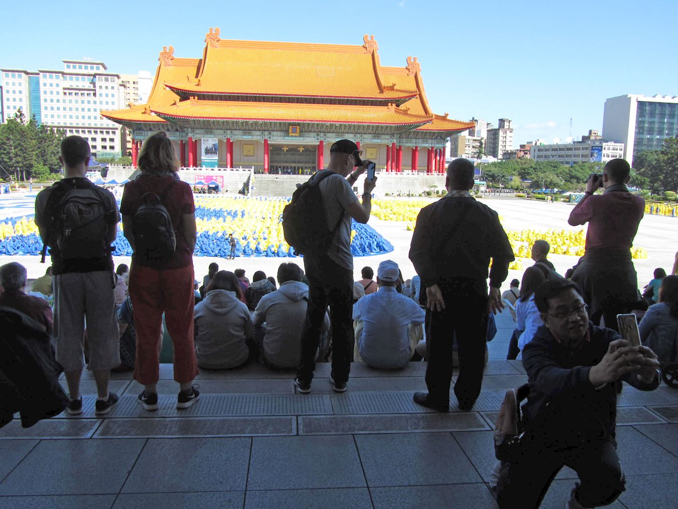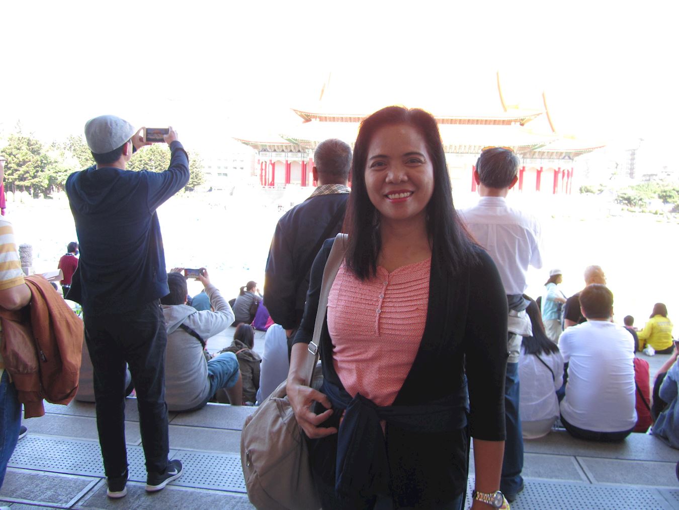 铃木先生和七、八位日本青年参观中正纪念堂出来,第一次看到这么壮观的场面,他们有所感动的表示:越多人心中有善念,就不会去伤害别人,世界会更美好。