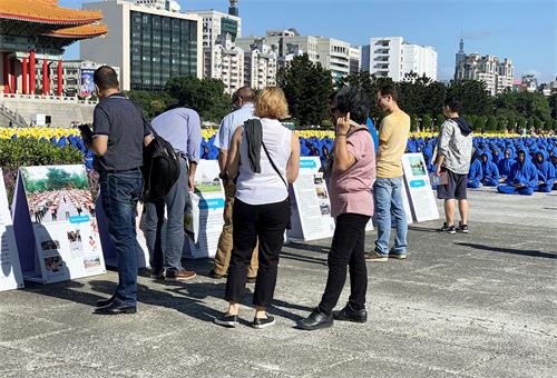 来自大陆的刘先生,徘徊在真相展板面前,第二次来台湾旅游的他表示,大陆网路封锁非常严峻,百分之九十九的讯息是被过滤的,但他是想尽办法翻墙的百分之一,为的是了解自由世界的真相。因此,对于法轮功真相,他非常了解。他说,法轮功在一百多个国家和地区可以自由学炼,他认为“真善忍”的精神是追求心灵的完善,并且提高道德修养,这是普世的价值,是信仰自由,本该予以尊重;但是很遗憾的是,在极权统治下的大陆,教堂、庙宇被强拆,是时有所闻的事。