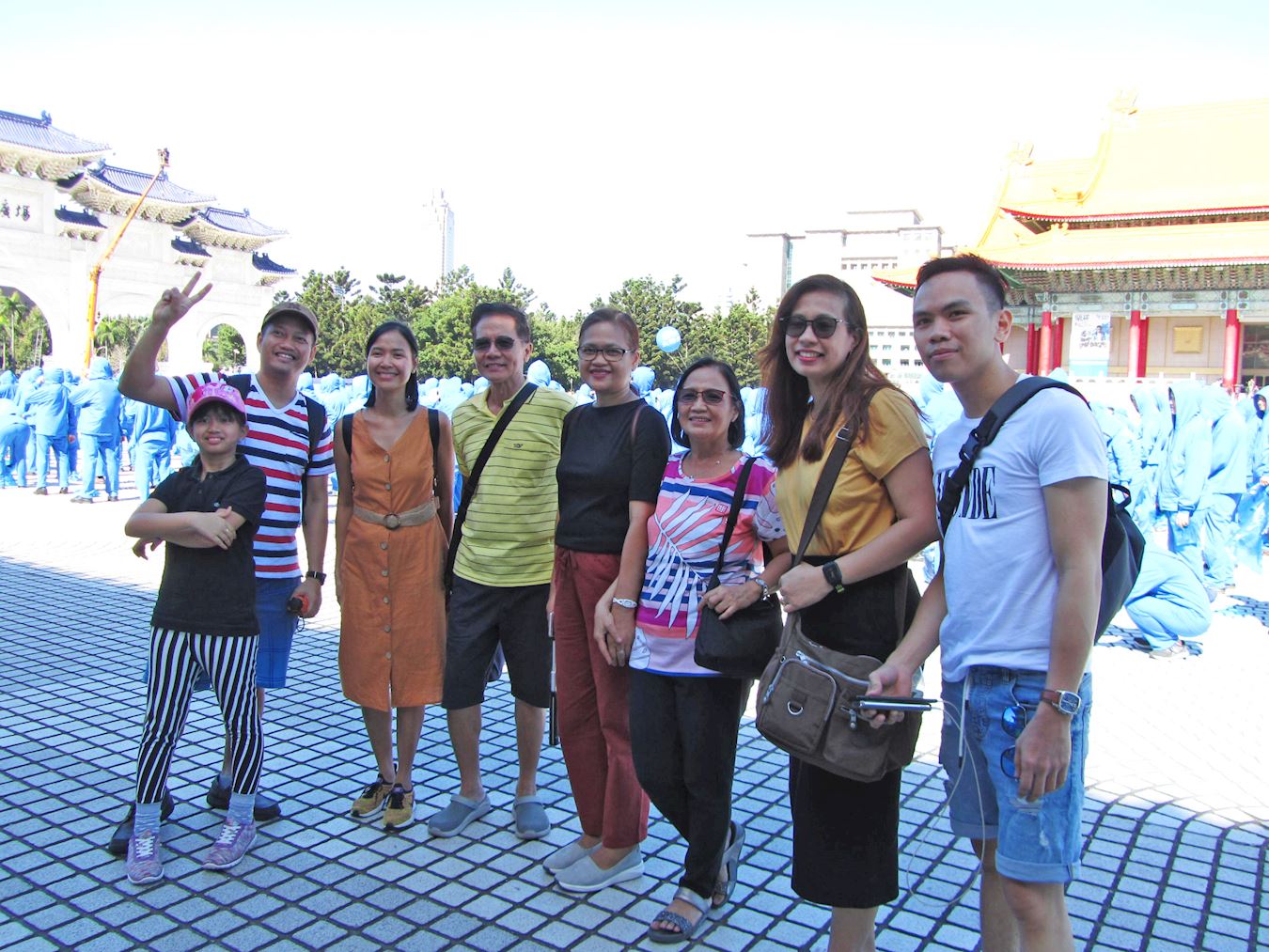 几位菲律宾城市民政登记处的同事和家人一起来台光观旅游,全都是第一次看到法轮功学员的活动。曾在北京居住一段时间的约瑟芬·马拉南太太(Mrs. Josephine Maranen)(图14左五)表示知道中共当局禁止法轮功,在台湾看到这么多法轮功学员齐聚一堂,感到很惊奇(amazing),称赞台湾环境和民众都很友善,与北京不一样。