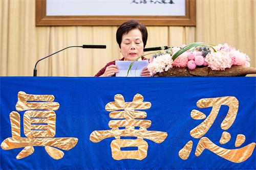 来自高雄的康女士交流了一人得法全家受益,以及自己在景点讲真相的过程。
