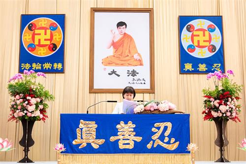 法会上,二十名来自各行各业的学员上台发言,交流修炼法轮大法后的身心变化的殊胜体会,以及向社会各界讲述法轮功真相的过程中,如何按照真善忍的原则指导修炼,在查找自身不足中突破各种困难与怕心,坚持不懈救人,展现法轮大法的美好的体会。