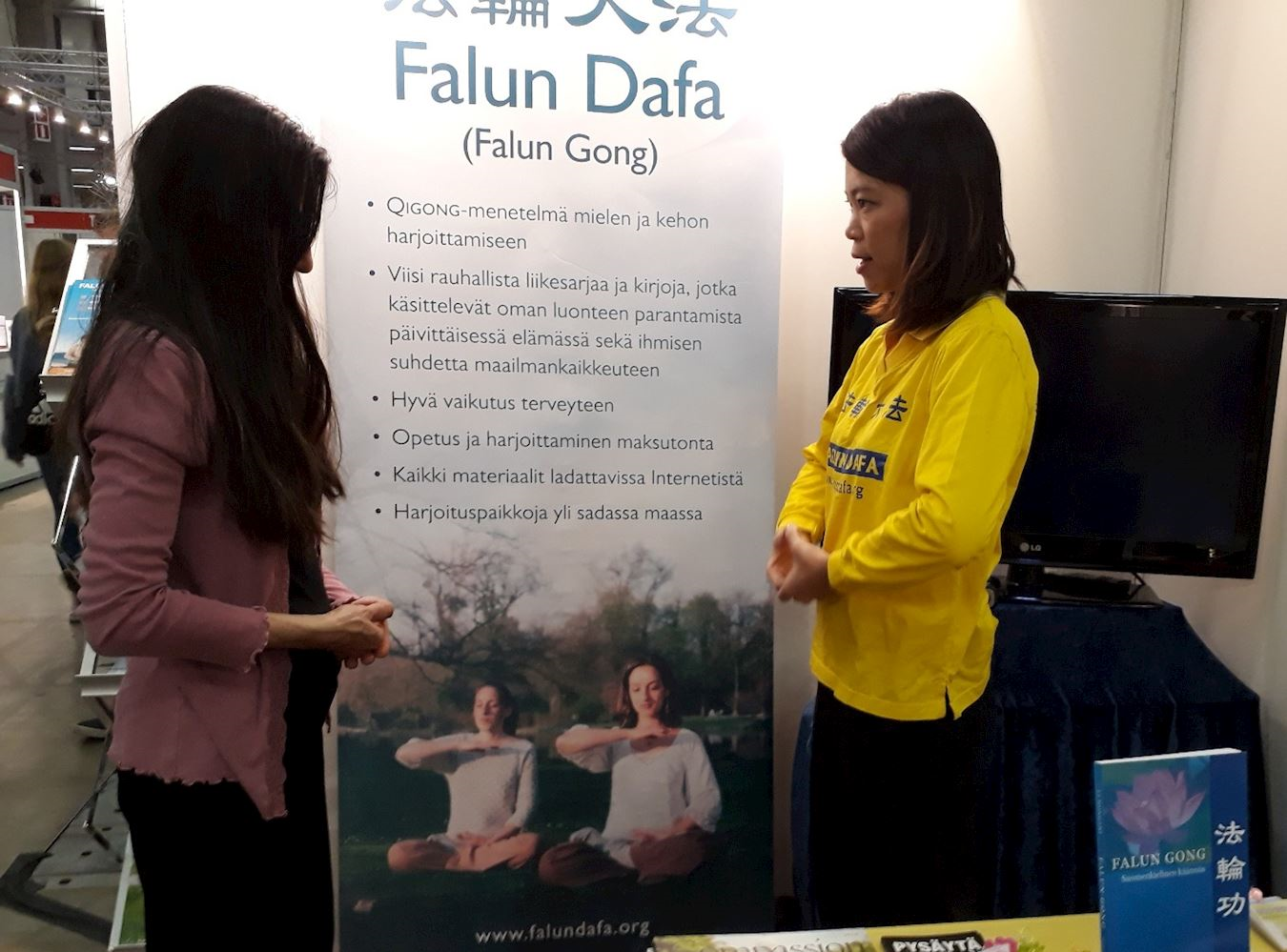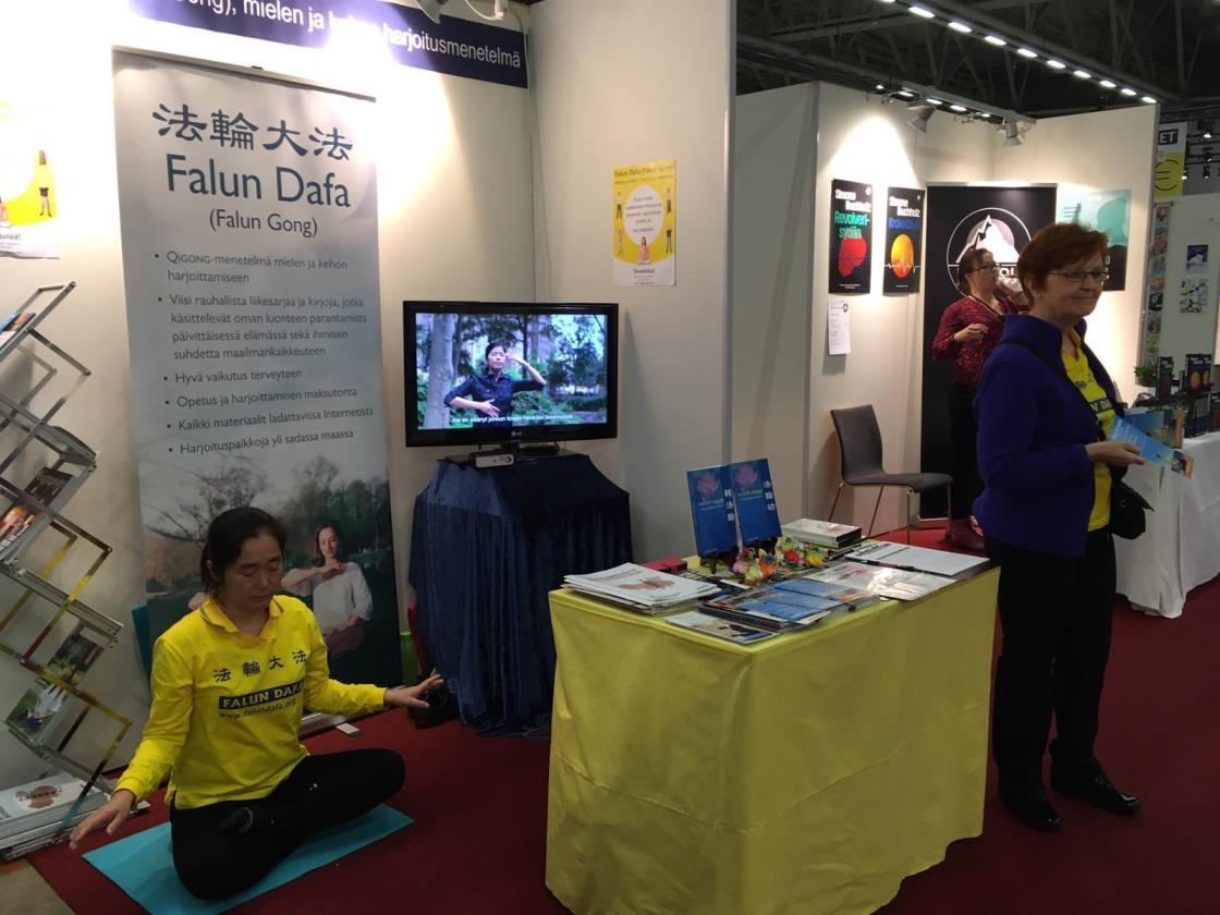 法轮功学员在会展中心申请了一个信息台,向参观者提供关于法轮大法的信息。展台吸引了很多感兴趣的人,询问功法特点及当地炼功点的信息。人们赞扬法轮功学员为结束迫害所做出的不懈努力,也很明白“真善忍”的普世价值是中共的思想体系所容不下的。很多人停下来,听闻到中共对法轮功持续至今长达二十年的迫害事实后,签名呼吁结束迫害。