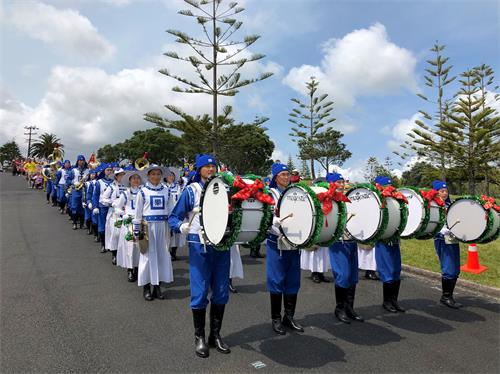 ![]() 图1~5:二零一九年十一月十七日,由法轮功学员组成的新西兰天国乐团参加了一年一度的奥克兰格兰菲尔德(Glenfield )区的圣诞游行。 |