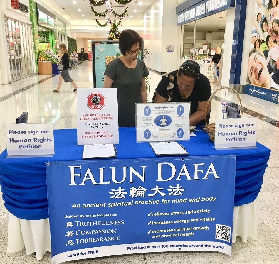 两天征签活动中很多民众在跟法轮功学员们深入交谈后,都表示很喜欢法轮功的“真、善、忍”修炼原则。有的还询问附近的炼功点信息,想要学炼法轮功。所有签过名的人们都呼吁澳洲政府应该制定相关法律,禁止澳洲人去中国做器官移植,并表示回去后一定帮助广传真相,制止迫害。