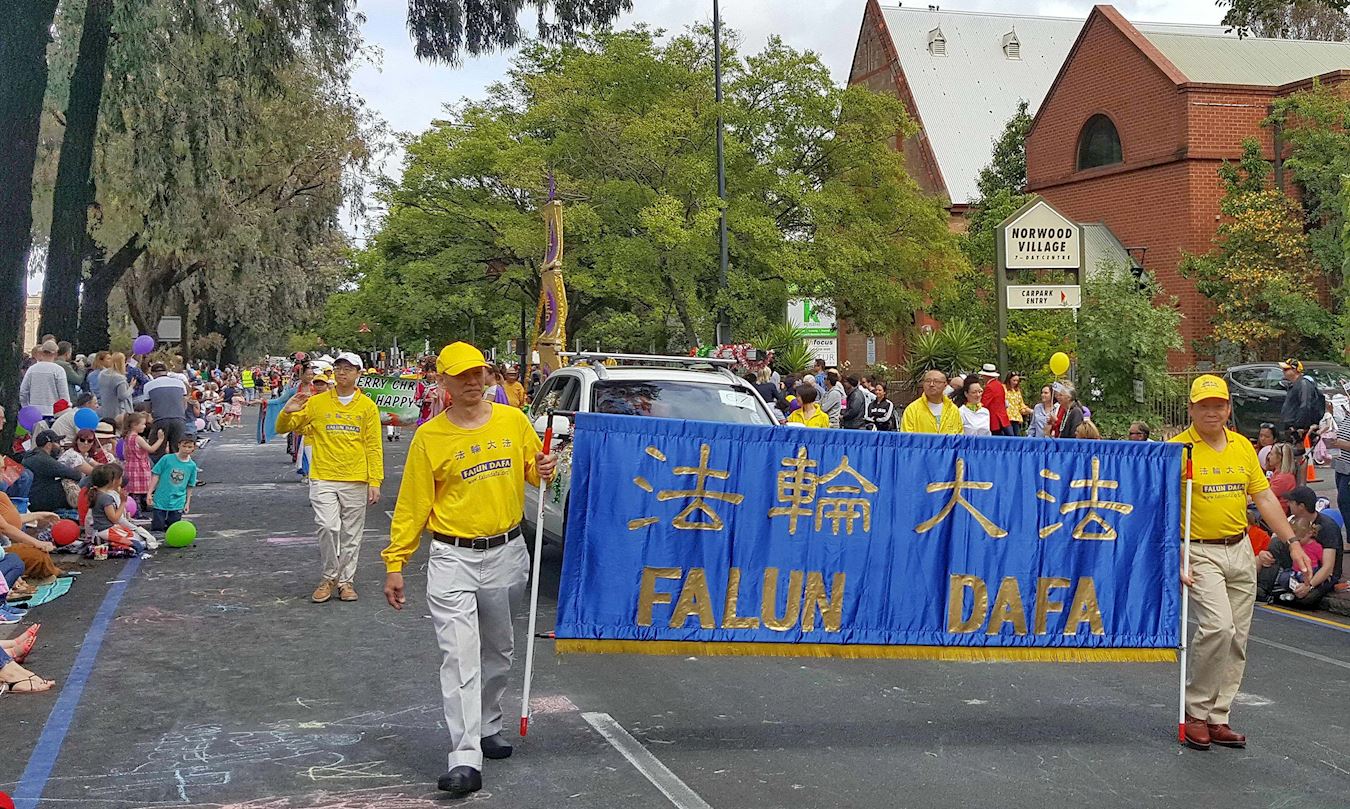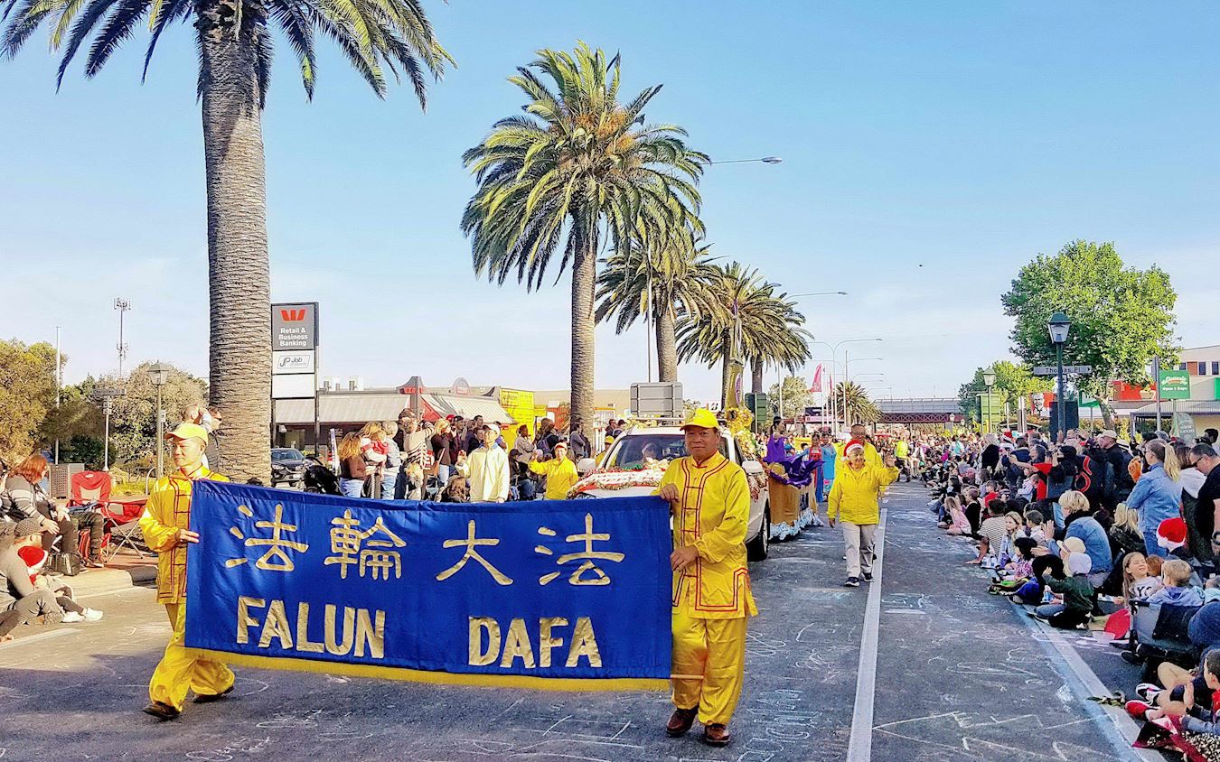 二零一九年十一月十六日和二十三日(周六),法轮功学员参加了阿德莱德港(Port Adelaide)和诺伍德市(Norwood)传统的圣诞花车游行庆祝活动,受到当地观众和游客的欢迎,有观众表示想要学炼法轮功。