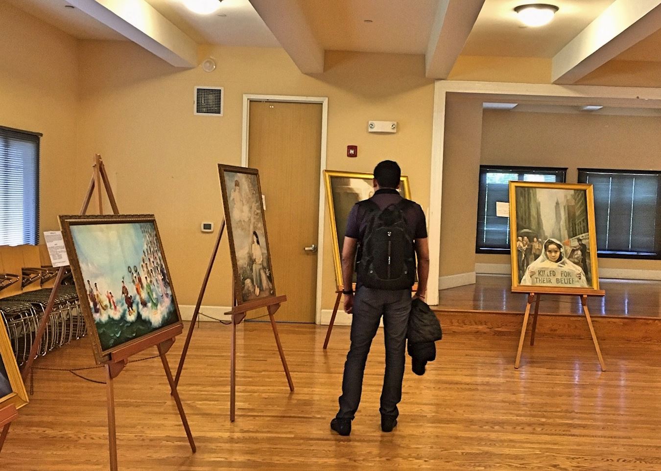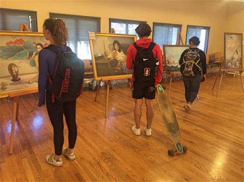 ![]() 图2:二零一九年十一月二十二日,“真善忍美展”在斯坦福大学的老联合会所(Old Union Clubhouse)展出。 |