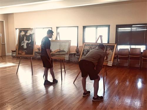 一位斯坦福的学者,曾经在中国求学六年,在中国时听说过法轮功,但是看了画展才了解法轮功受到了这样的迫害,当他了解到当天的展品只是全部画展作品中的一部份时(空间有限),立刻表示渴望还能看到其他的画卷,并留下了联系方式给主办者。