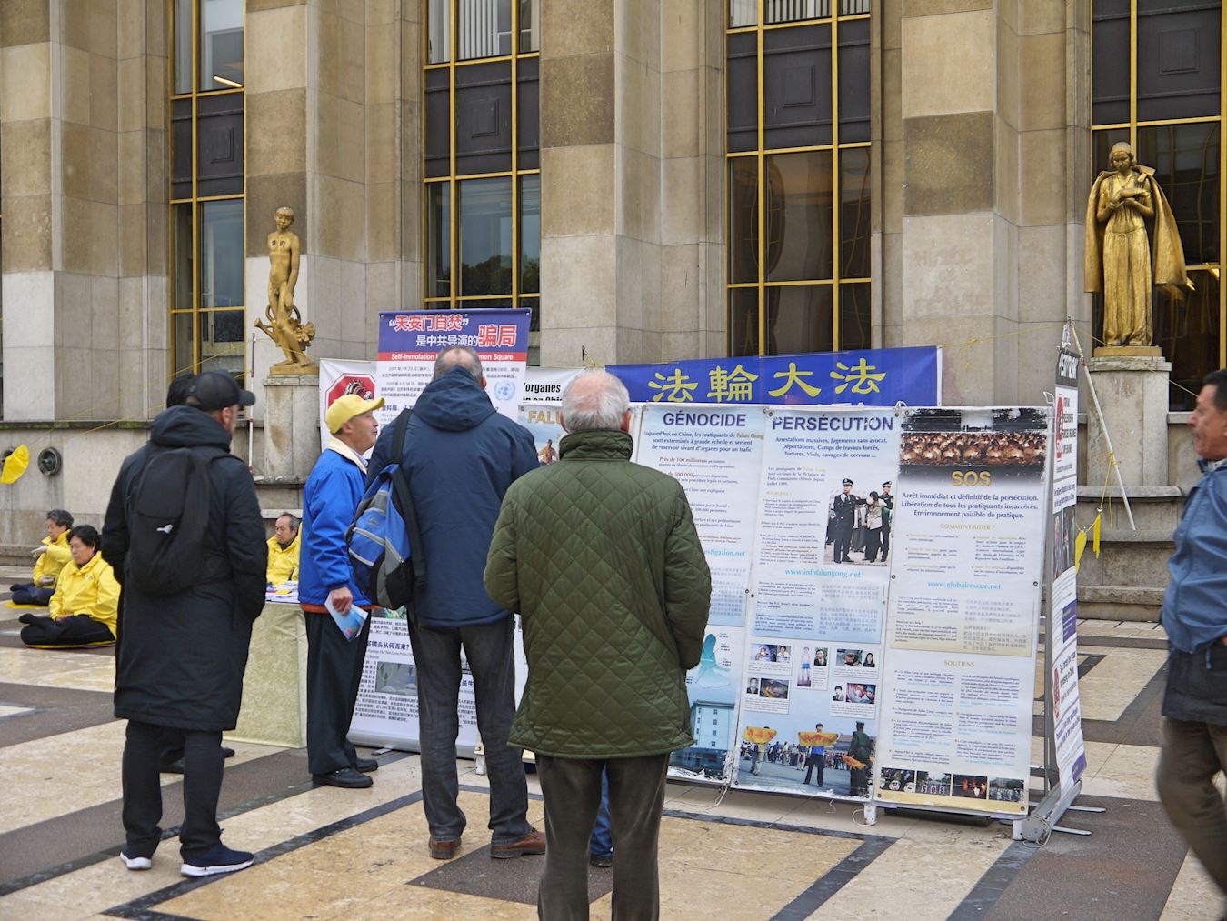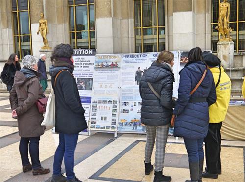![]() 图1:法轮功学员在巴黎人权广场进行展示法轮功功法和讲真相的活动。 |