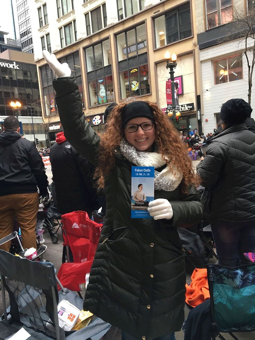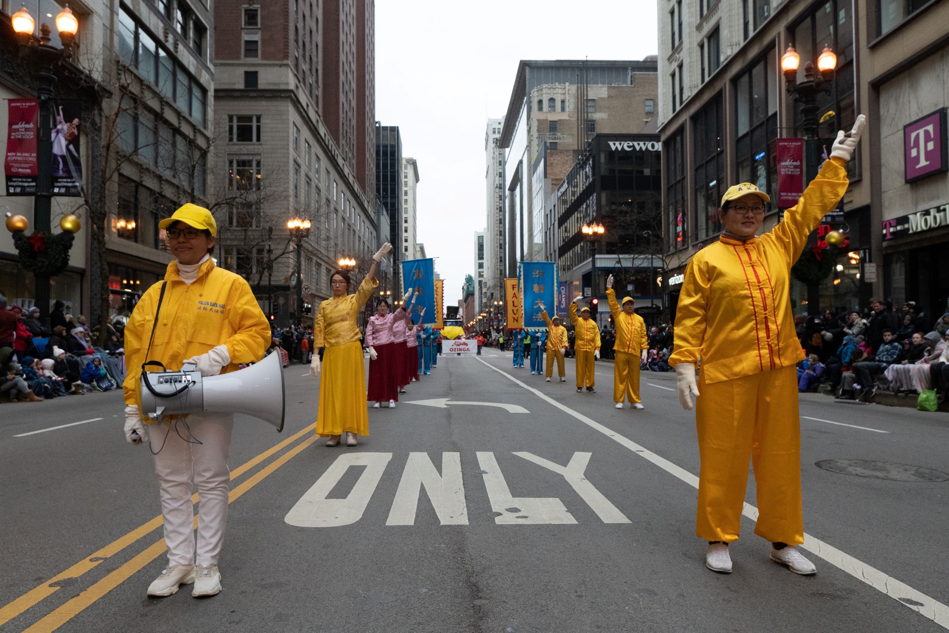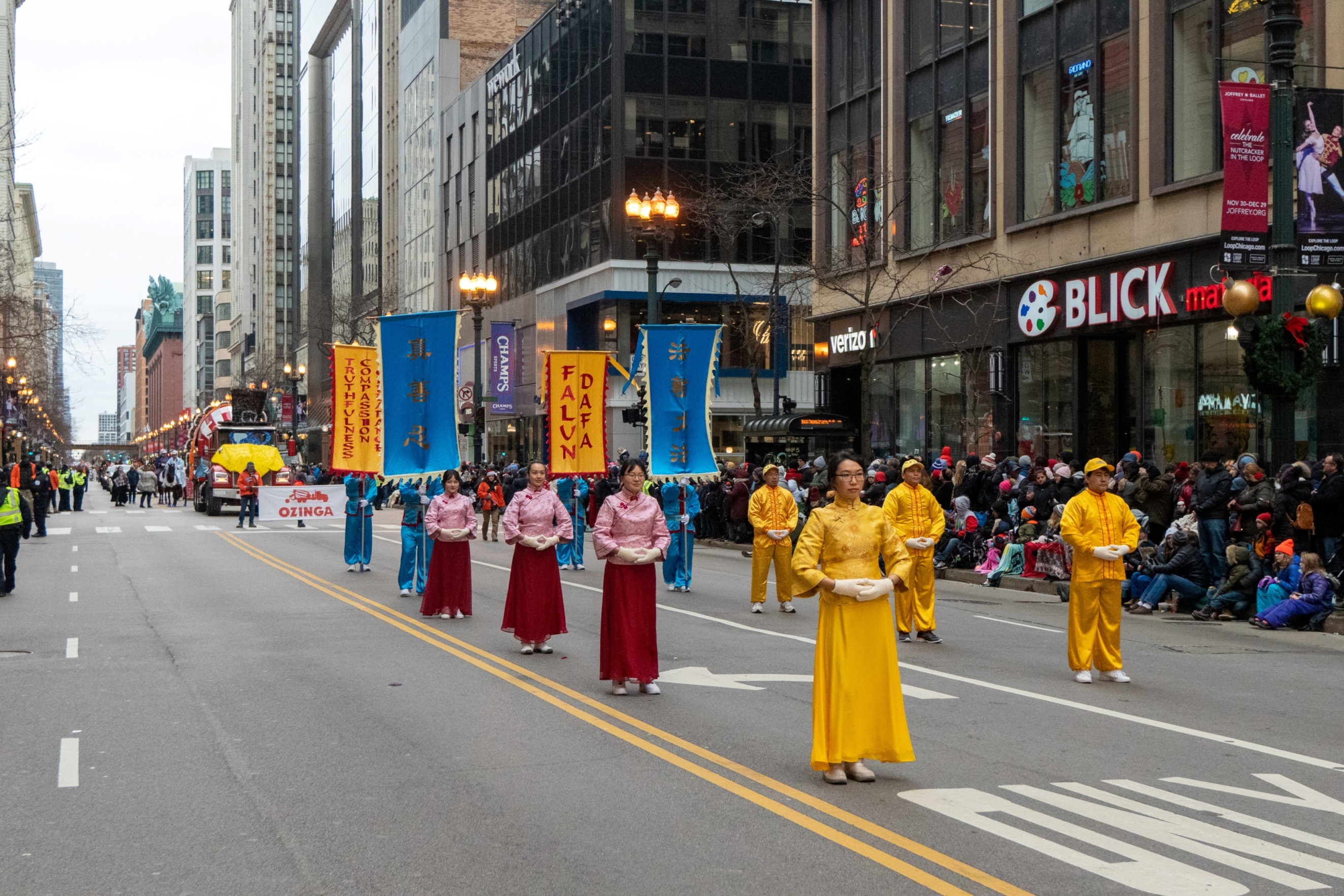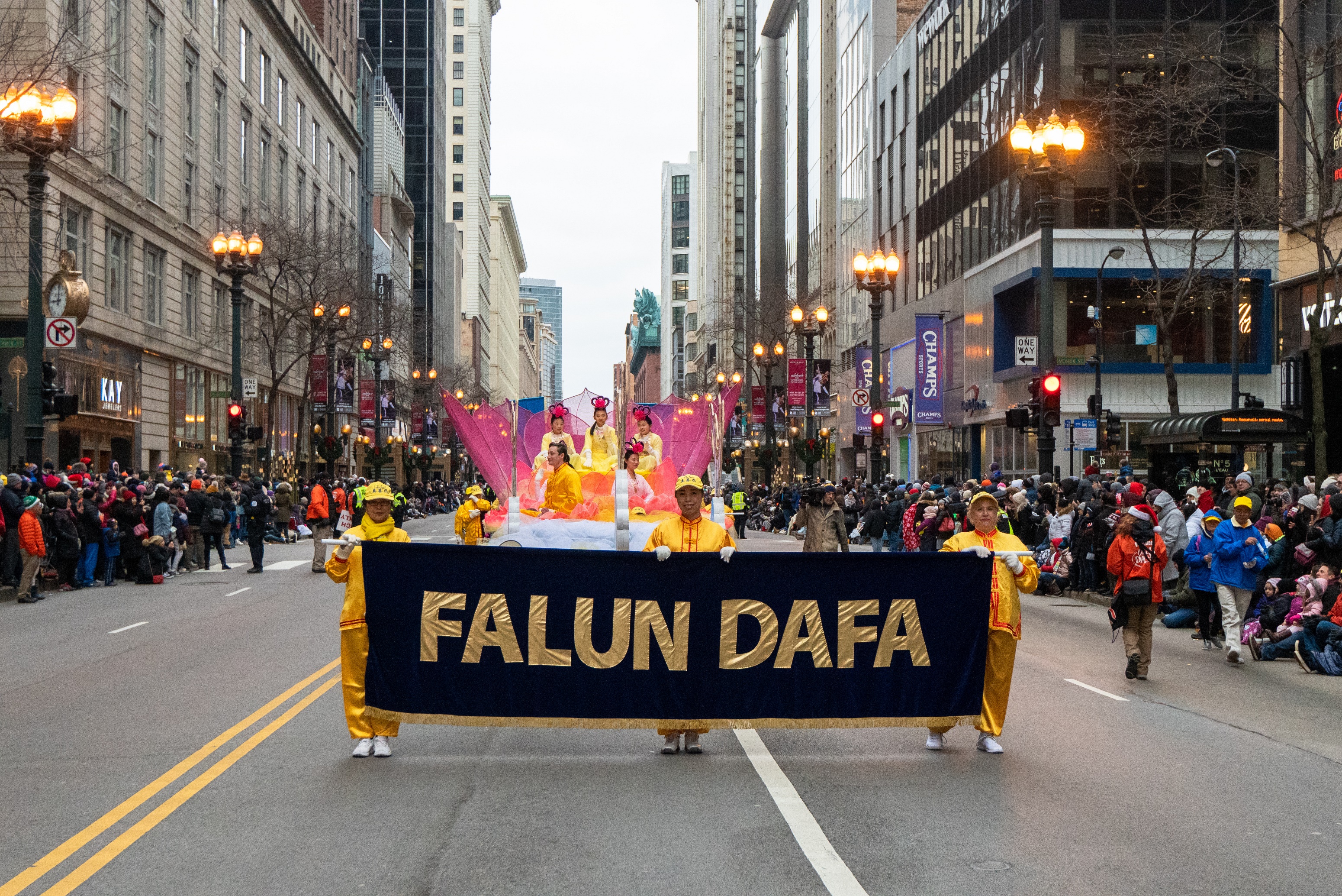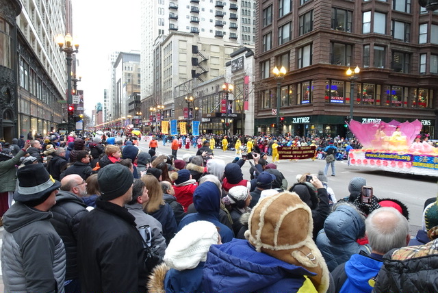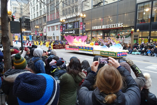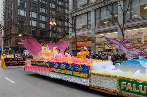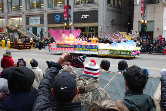 一年一度的芝加哥感恩节游行的队伍中有来自各州和其它国家的各种团体,现场观众有每年都来的芝加哥地区居民、政府官员和来自世界各地的游客,感恩节游行还有数百万的电视观众。他们纷纷表达对法轮功游行方阵的喜爱。