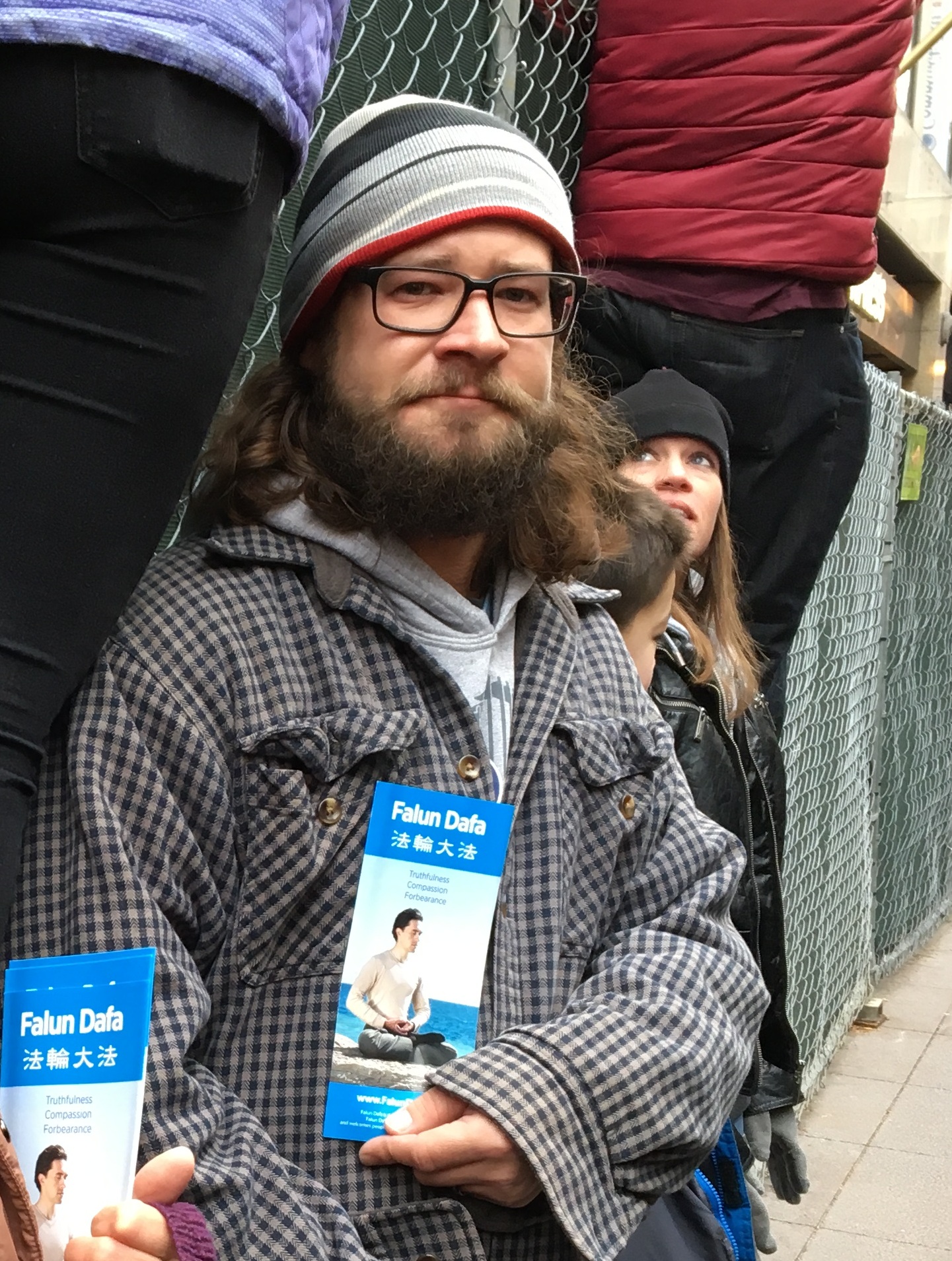 Brian一家来自芝加哥西北郊,听说法轮功非常好,也想学炼,今天拿到资料,说回去要上法轮功的网站好好看看。
