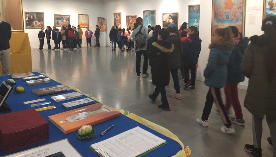 马德里一所学校的老师和学生参观了美展,在仔细欣赏了每幅画作之后,学员们向他们介绍了法轮大法的修炼,以及这个功法在中国遭到的迫害。许多人在留言簿中写下了他们的评论: