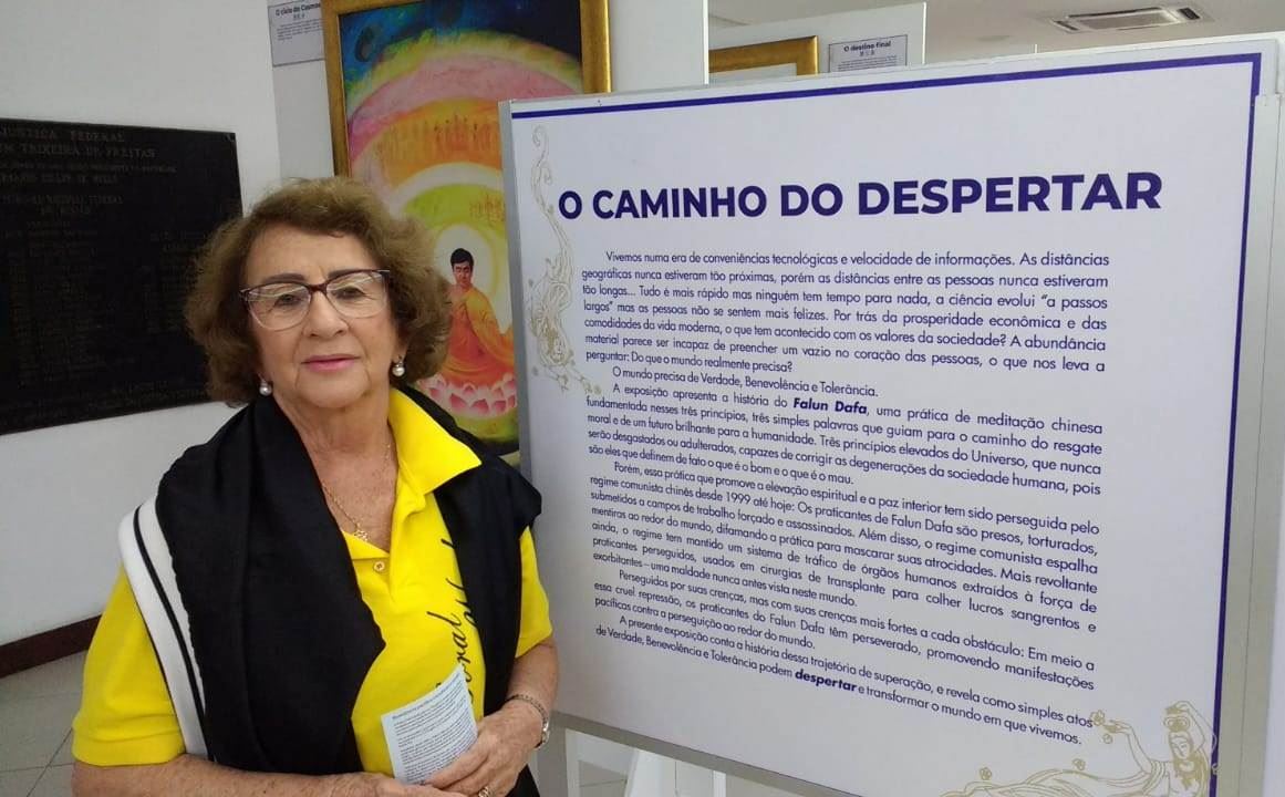 退休教授塞莱丝棋(Seleste Diniz)观看了画展,对法轮大法能在日常生活中指导修炼者改善道德观念这种方式很感兴趣。她感谢法轮功创始人李洪志大师给世人传授这么好的功法。她以前一直担心现在的年轻人已不想了解关于神的神圣。她表示以后可以放心了,人类会真正的被救度了。她要了解法轮大法,并向她所认识的人介绍法轮大法。