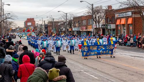 ![]() 图1~3:二零一九年十二月七日(星期六),由多伦多法轮功学员组成的天国乐团应邀参加了加拿大的两场圣诞游行。 |