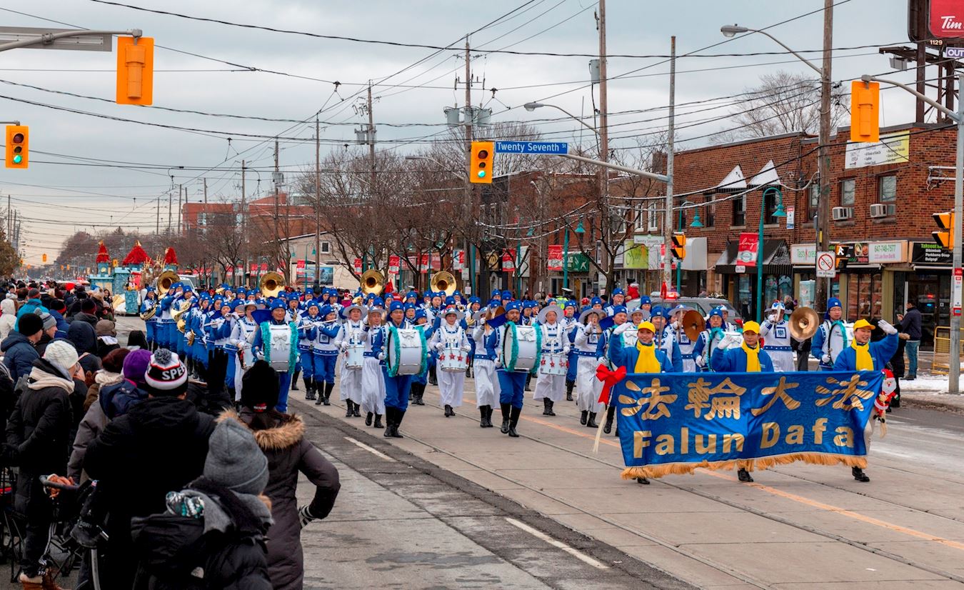 怡陶碧谷(Etobicoke)的游行中,来自天津的一位不愿意透露姓名的女士带着妈妈和女儿在观看游行,看到法轮功学员的天国乐团到来时,一家三口兴奋站起来鼓掌,她对记者说:“好几次游行都看到这个法轮功乐队(天国乐团)的参与,非常令人振奋,是我在整场游行中看到的最壮观的方阵。”