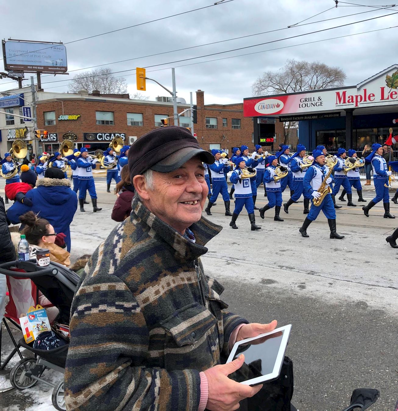 琳恩(Lynne)女士在天国乐团经过时一边用手机录像一边随着音乐节拍起舞,她兴奋地说:“我太爱这个乐队了,他们每年都来到这里。我非常喜欢他们,而且现在他们的成员越来越多了。他们的音乐,节奏,每个成员的脸上都带着笑容,所有的一切都让我感受到巨大的能量。我真的很喜欢他们投入的辛勤工作(hard working)。把天国乐团放在圣诞老人前面是一个绝好的出场方式。”